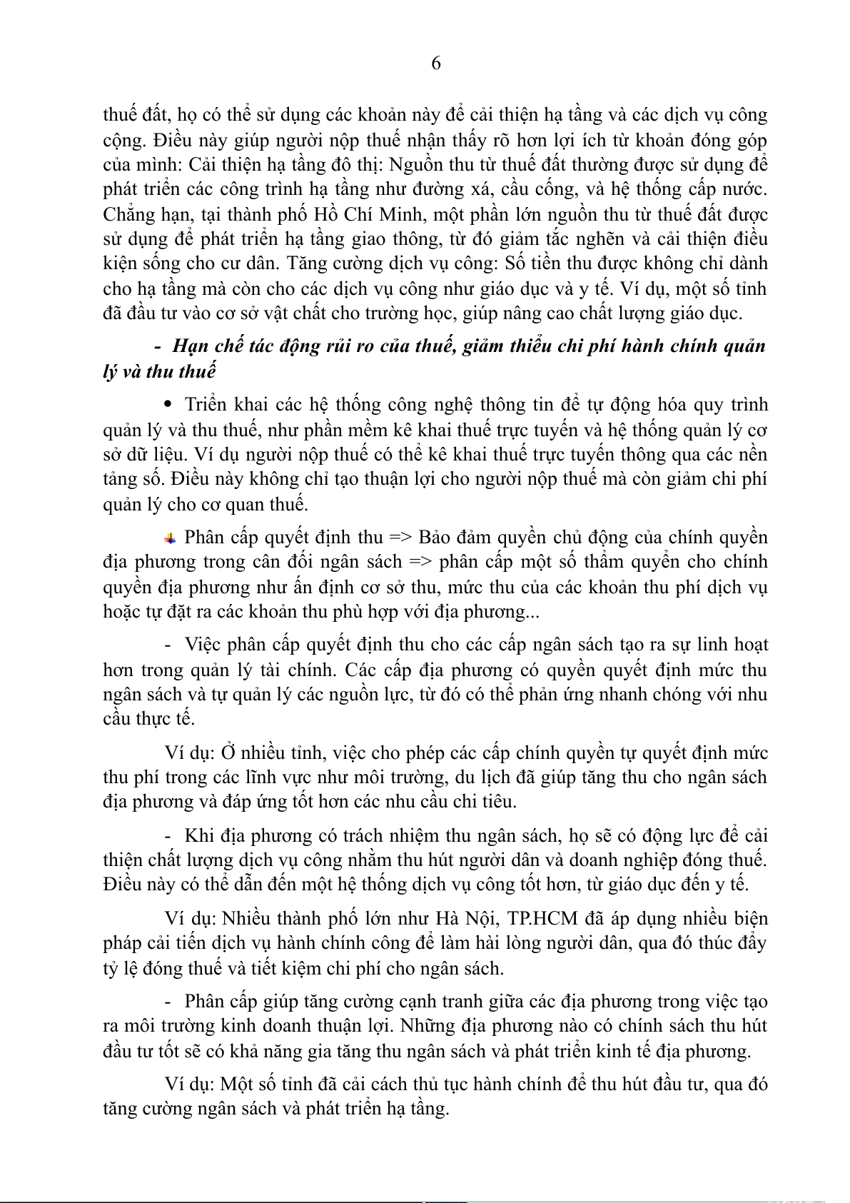 - Việc phân cấp quyết định thu cho các cấp ngân sách tạo ra sự linh hoạt