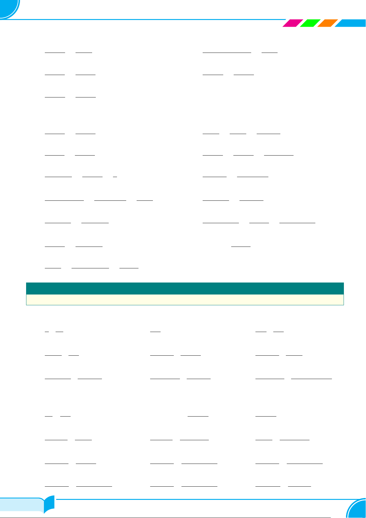 Bài 10. Thực hiện phép tính: 2x 5 Å 18x2y5 ã 25x3y5 a. : . b. 16x2y2 : − . c. : 15xy2. 3 6x2 5 3 x2 − y2 x + y a2 + ab a + b x + y x2 + xy d. : . e. : . f. : . 6x2y 3xy b − a 2a2 − 2b2 y − x 3x2 − 3y2 1 − 4x2 2 − 4x 5x − 15 x2 − 9 6x + 48 x2 − 64 g. : . h. : . i. : . x2 + 4x 3x 4x + 4 x2 + 2x + 1 7x − 7 x2 − 2x + 1 4x − 24 x2 − 36 3x + 21 x2 − 49 3 − 3x 6x2 − 6 j. : . k. : . l. : . 5x + 5 x2 + 2x + 1 5x + 5 x2 + 2x + 1 (1 + x)2 x + 1 25/99 25/99