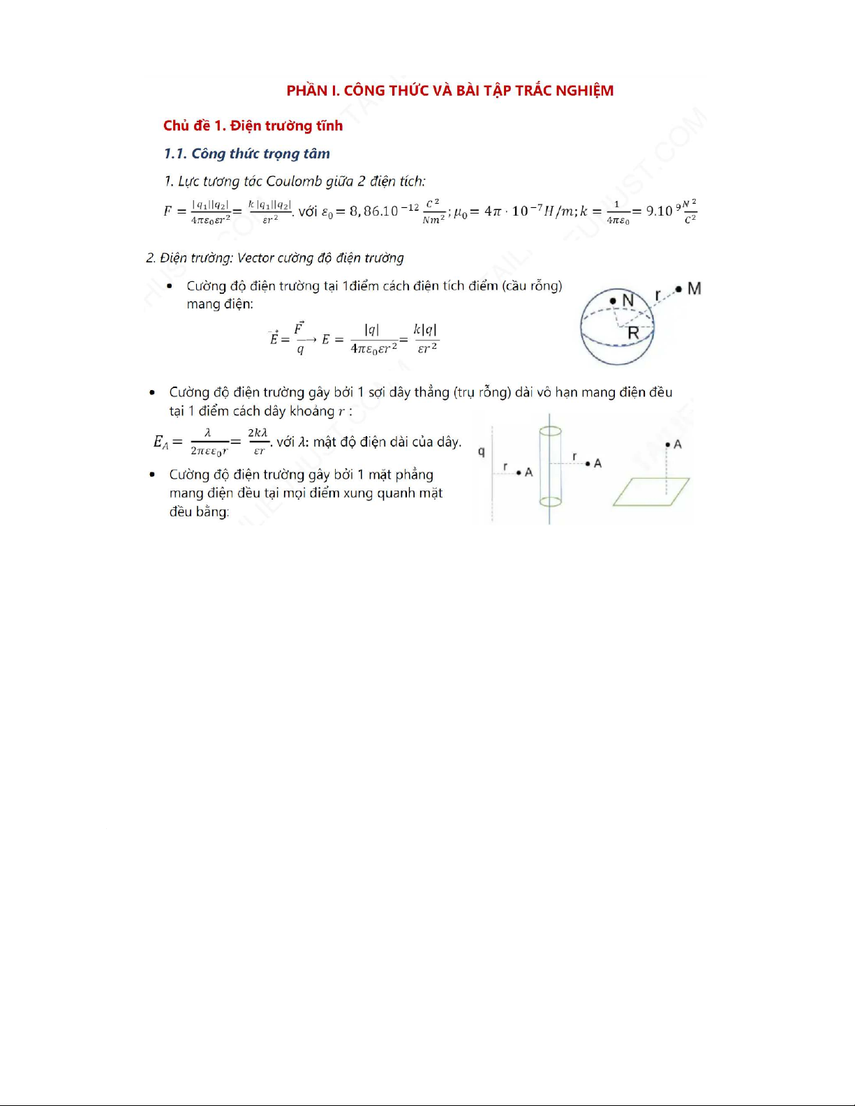 Phần I Công thức và bài tập trắc nghiệm môn Vật lý đại cương 2 | Học viện Công Nghệ Bưu Chính Viễn Thông
