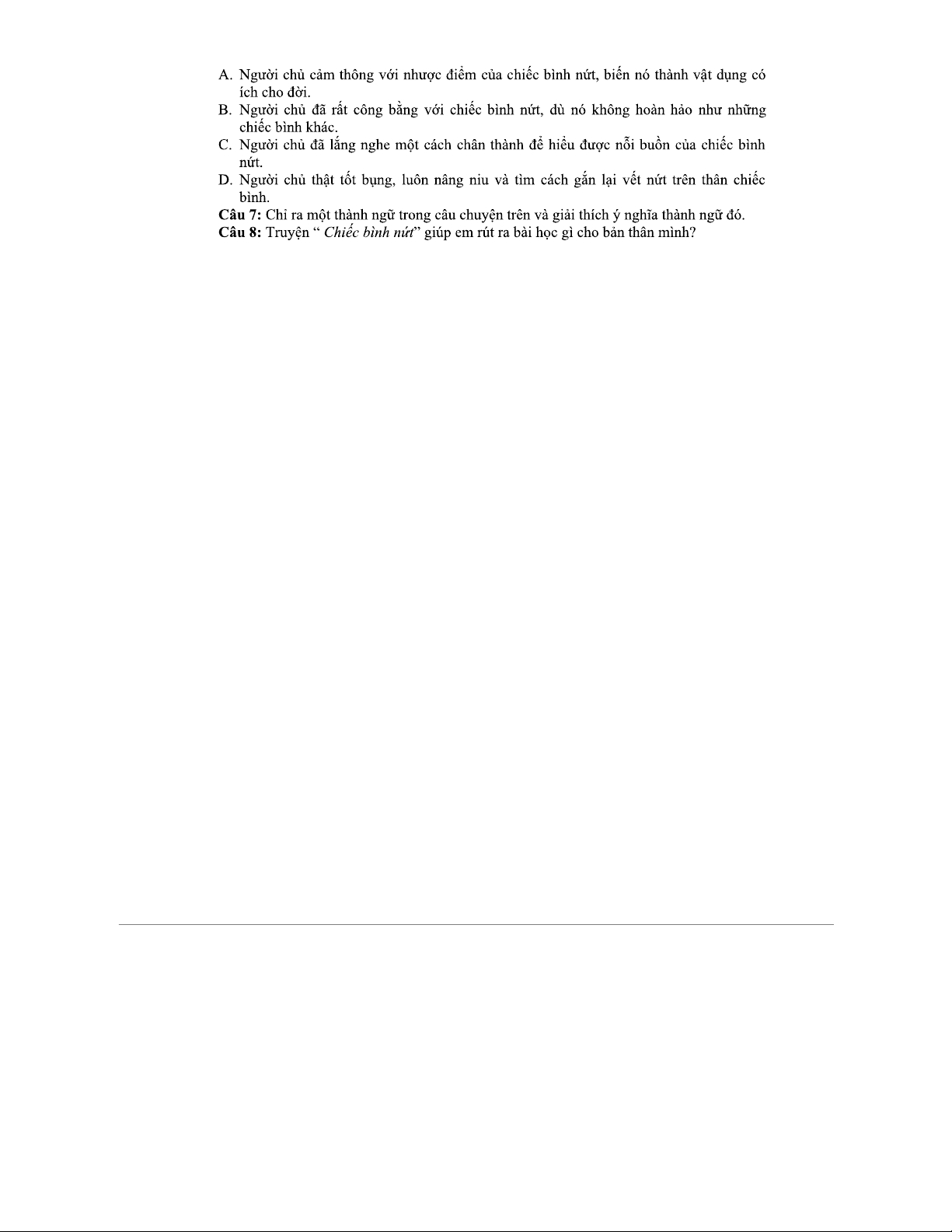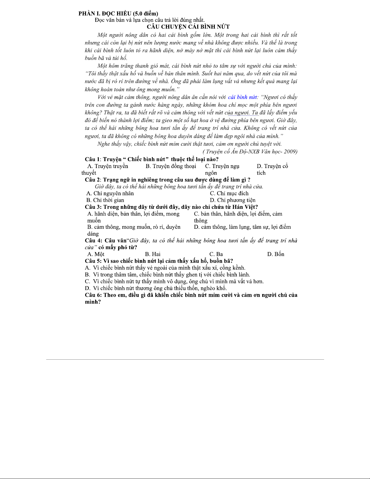 PHẦN I - Đọc Hiểu: Truyện "Chiếc Bình Nứt" Và Các Câu Hỏi Liên Quan