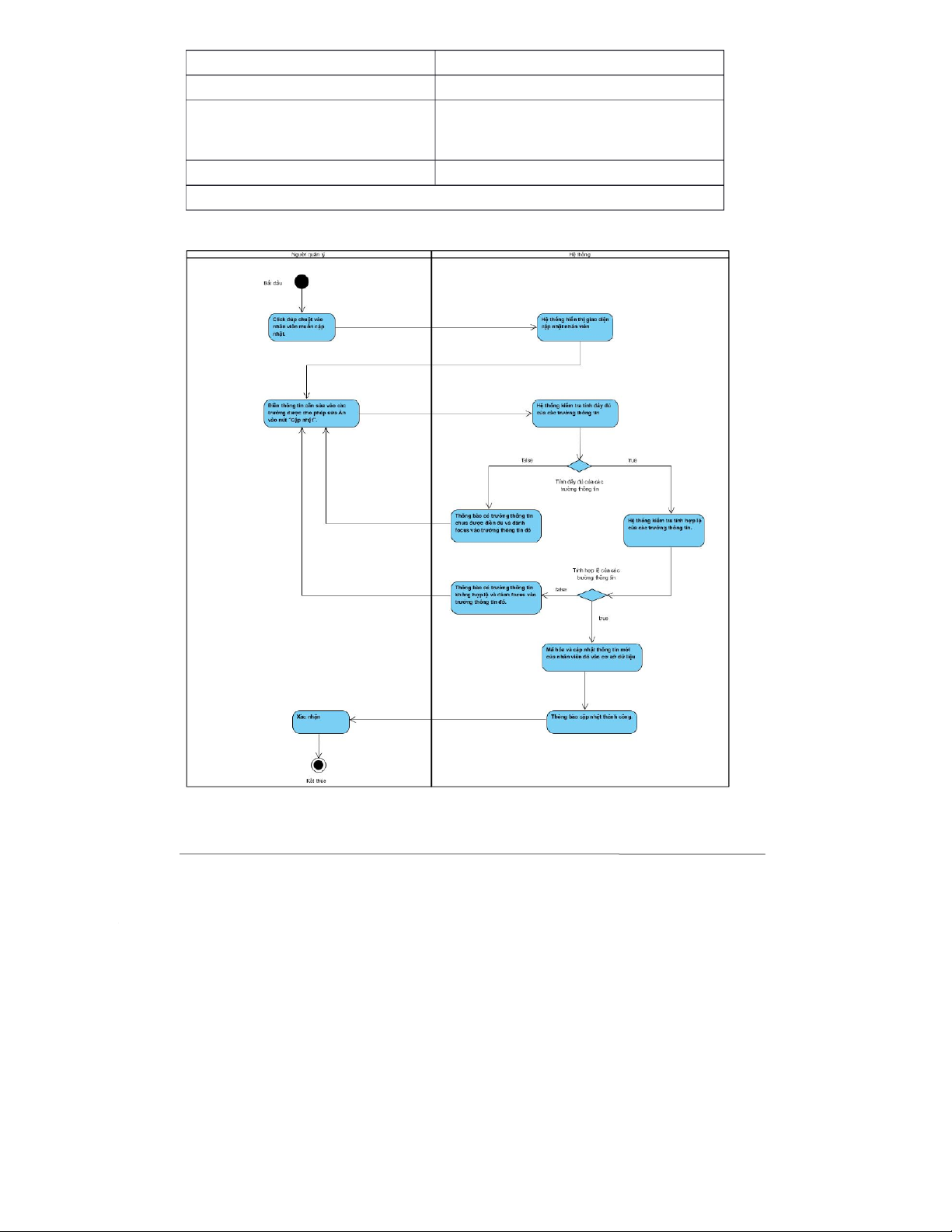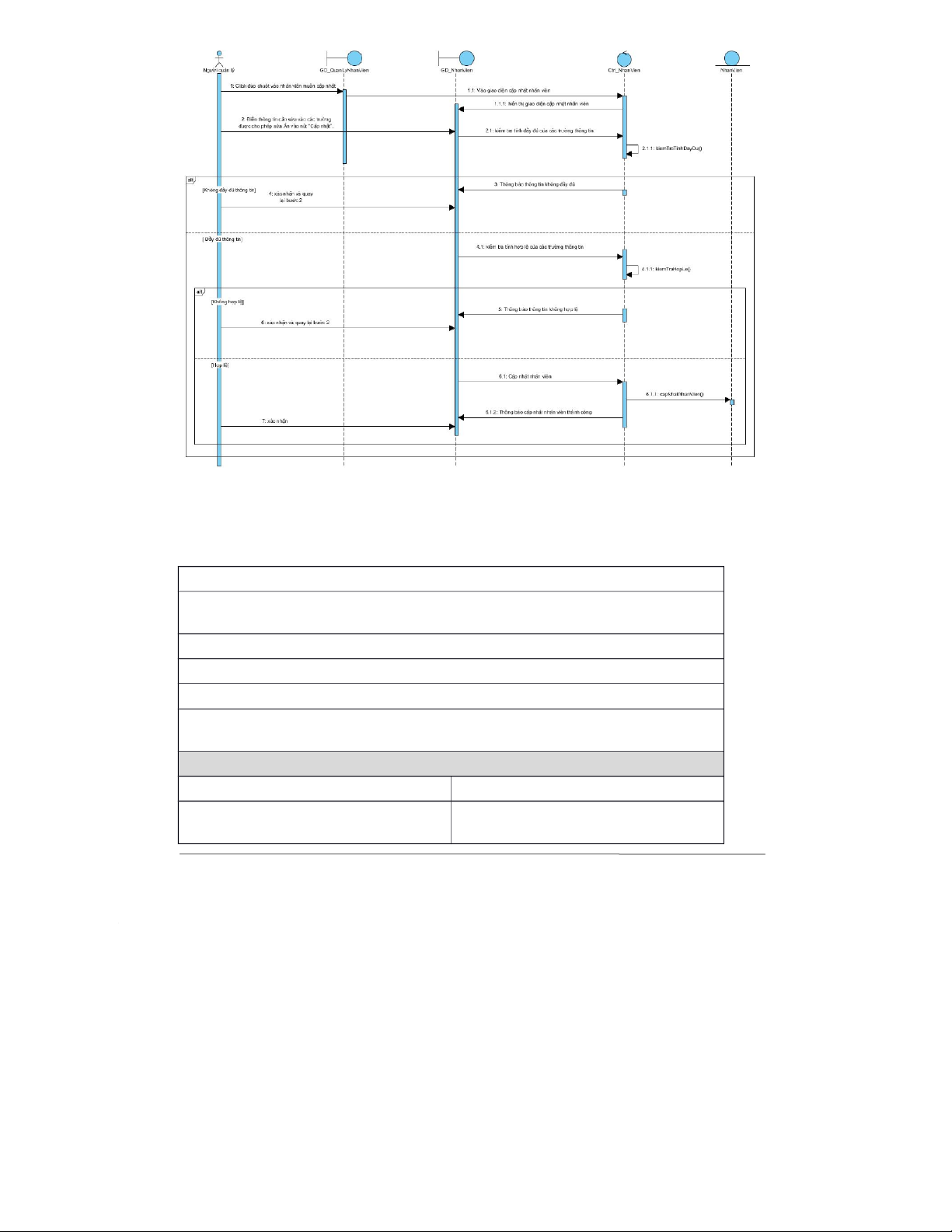 Mô tả sơ lược: Cho ph{p người quản lí cập nhật thông tin nhân viên.