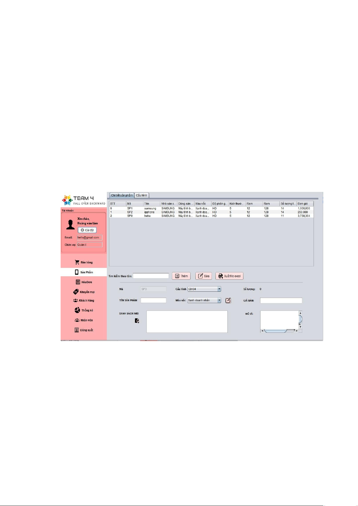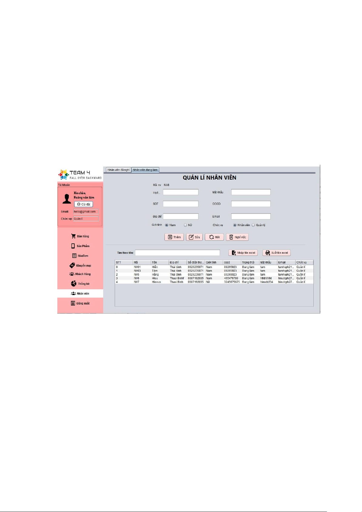 hình ‘Quản lí nhân viên’. Thông báo thêm thành công cũng sẽ được hiển thị. 4.3 Sửa nhân viên