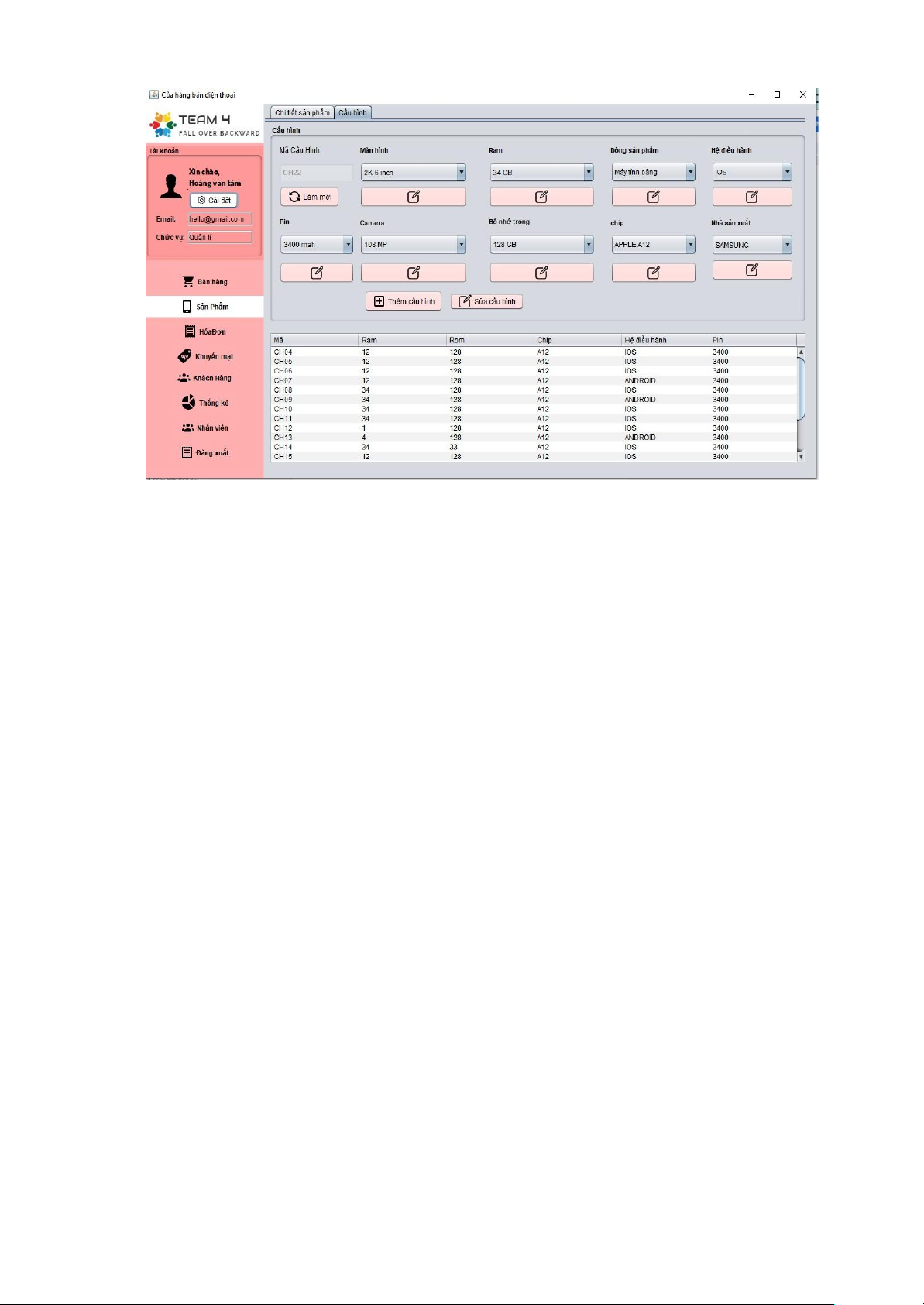 Người dùng có thể thêm các thuộc tính mới cho cấu hình bằng cách click vào các button phía dưới các combobox. 4. Nhân viên