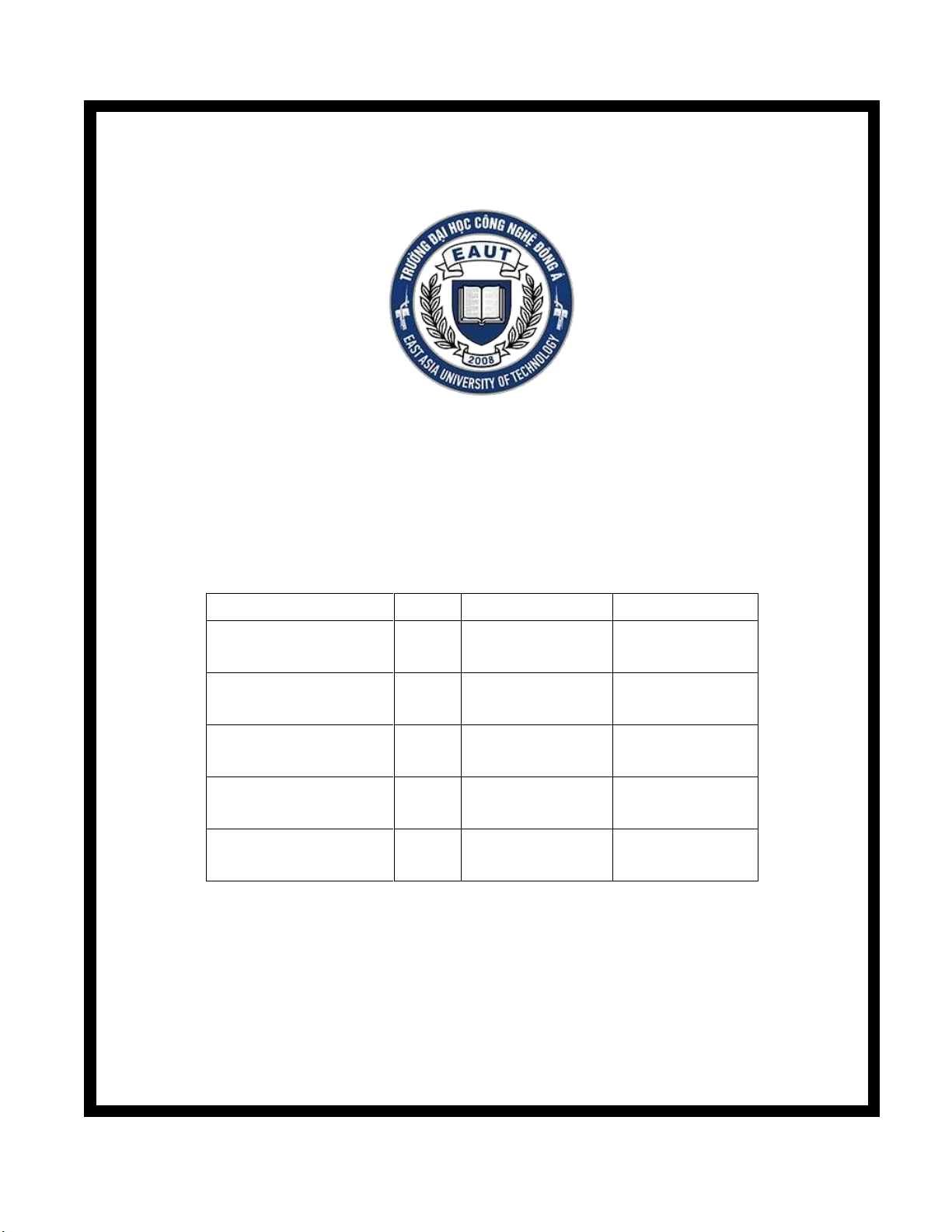 TRƯỜNG ĐẠI HỌC CÔNG NGHỆ ĐÔNG Á    BÀI TẬP LỚN