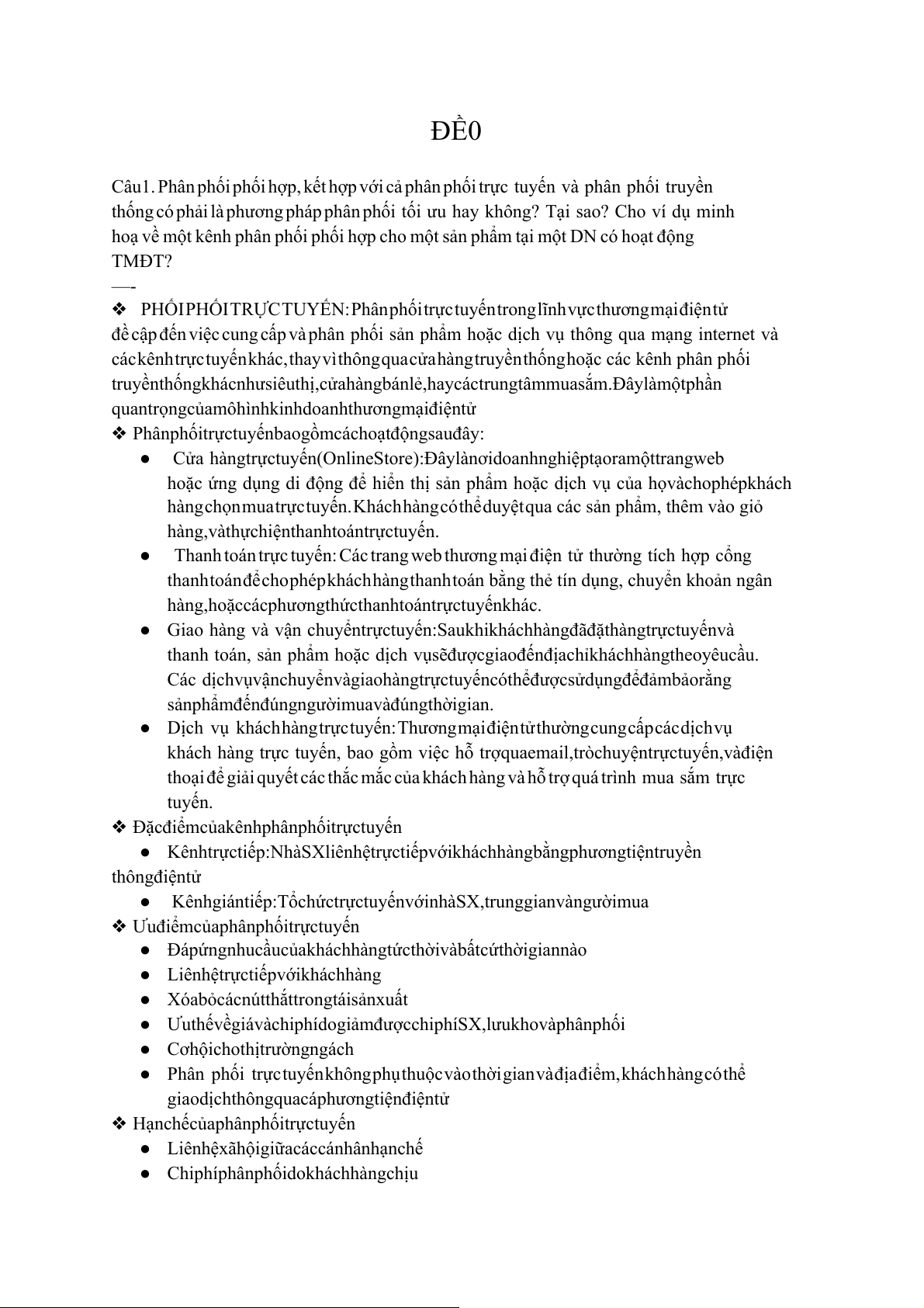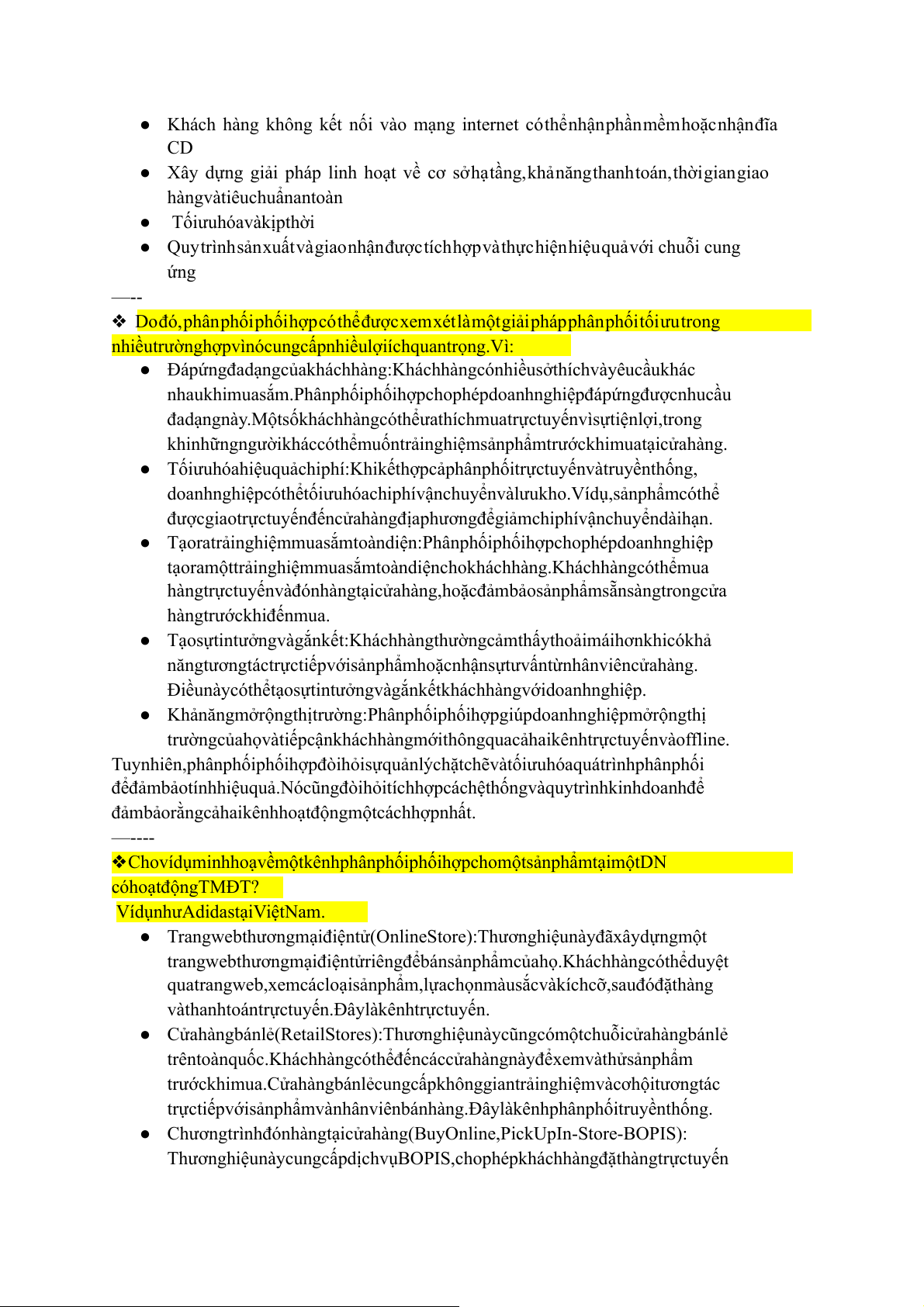 Câu1. Phân phối phối hợp, kết hợp với cả phân phối trực tuyến và phân phối truyền