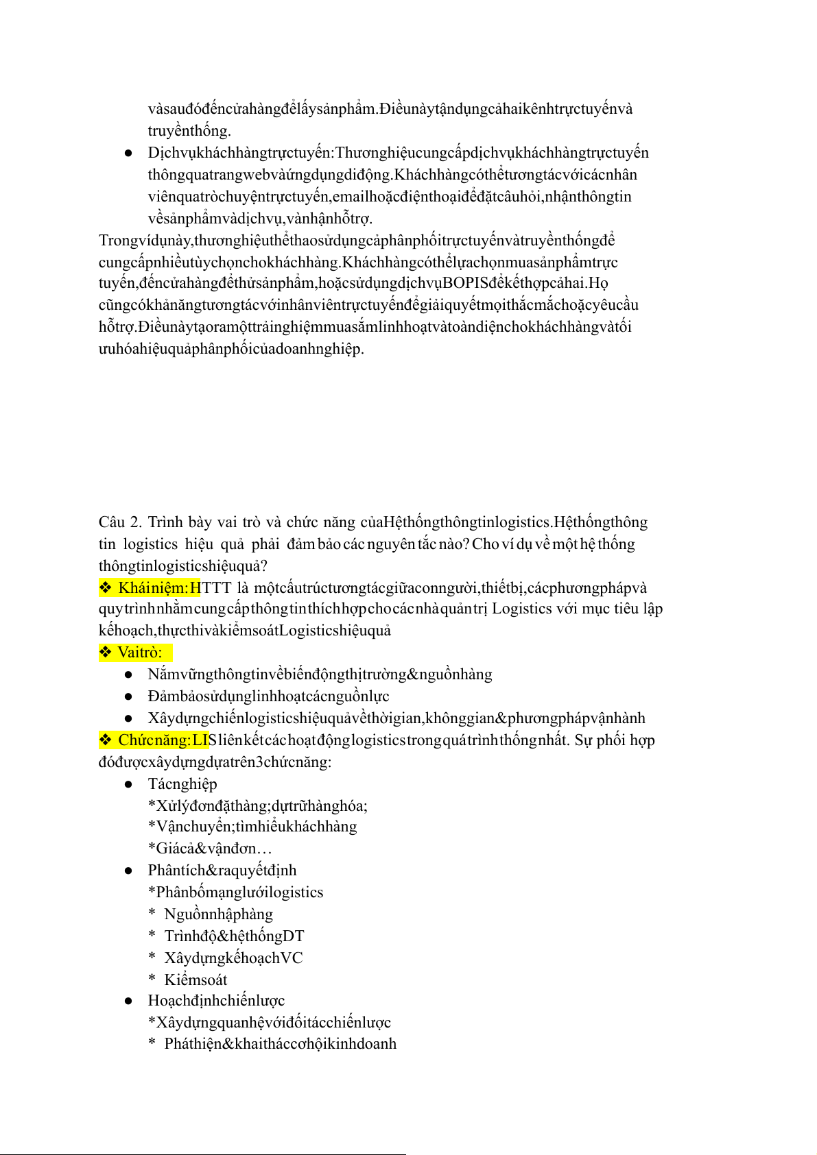 Câu 2. Trình bày vai trò và chức năng củaHệthốngthôngtinlogistics.Hệthốngthông