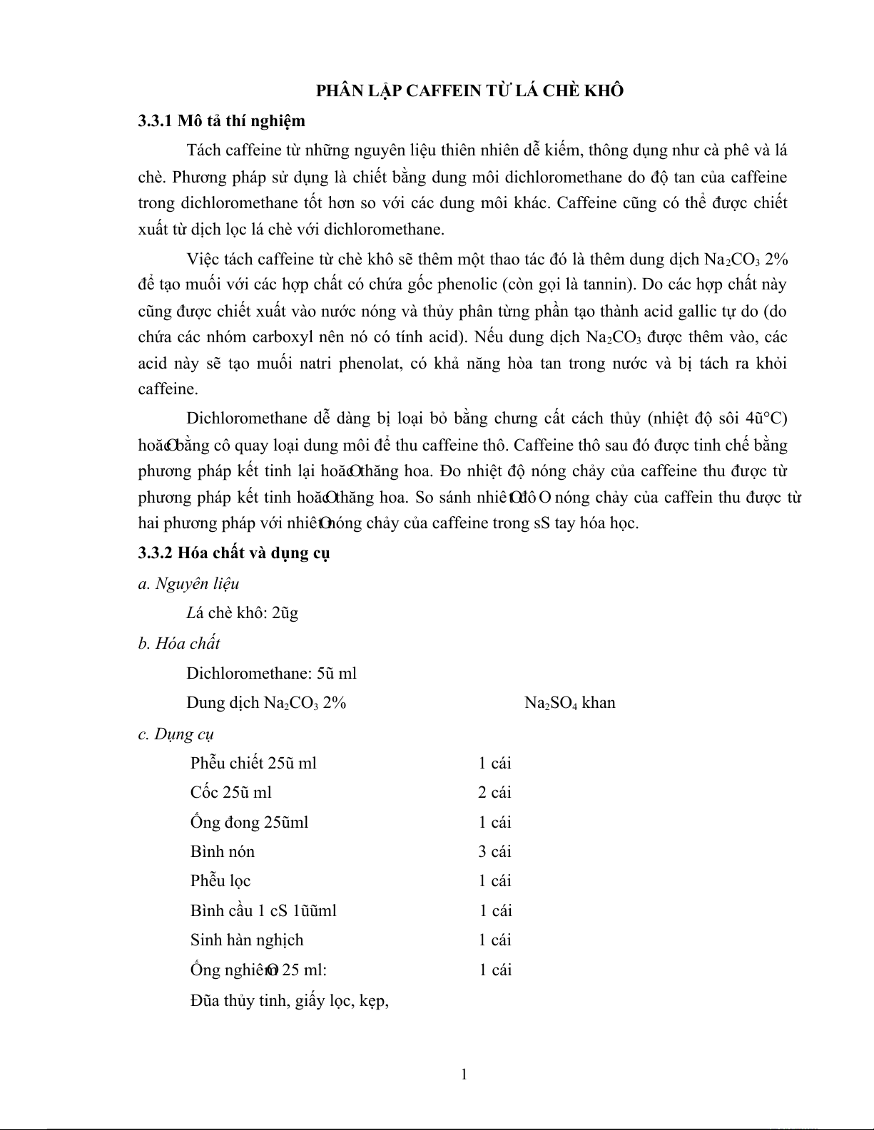 PHÂN LẬP CAFFEINE TỪ LÁ CHÈ KHÔ