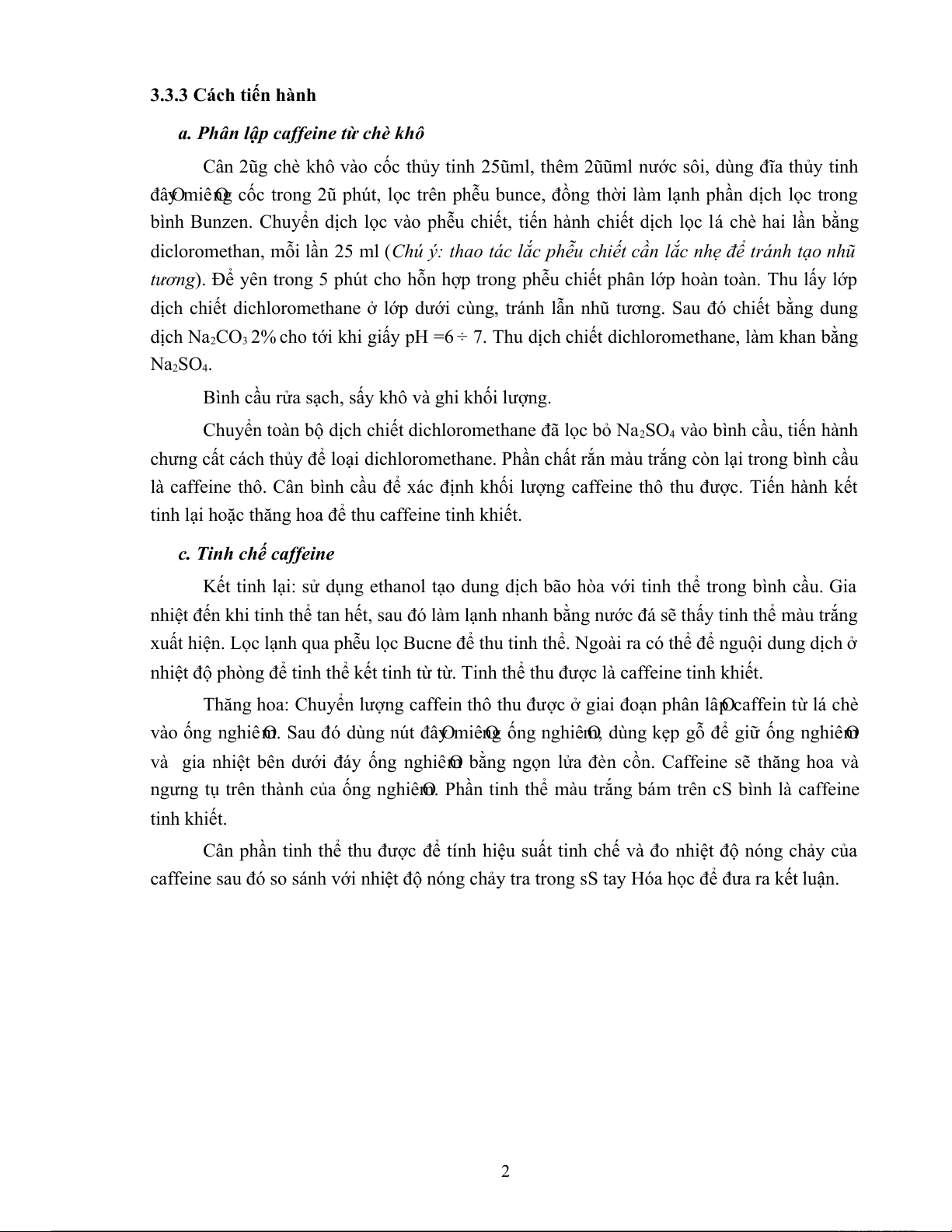 chè. Phương pháp sử dụng là chiết bằng dung môi dichloromethane do độ tan của caffeine