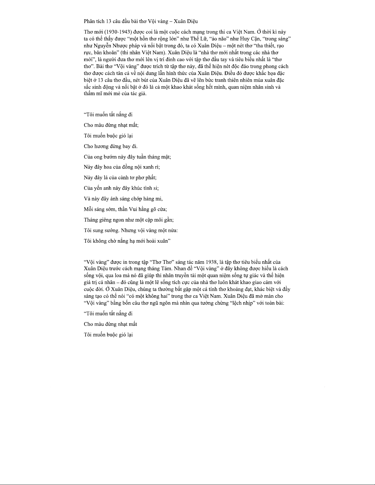 Phân tích 13 câu đầu bài thơ Vội vàng (Thơ mới - Xuân Diệu)