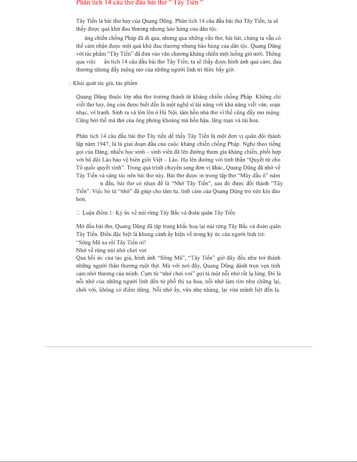 Phân Tích 14 Câu Thơ Đầu Trong Bài Thơ Tây Tiến - Tác Giả Quang Dũng