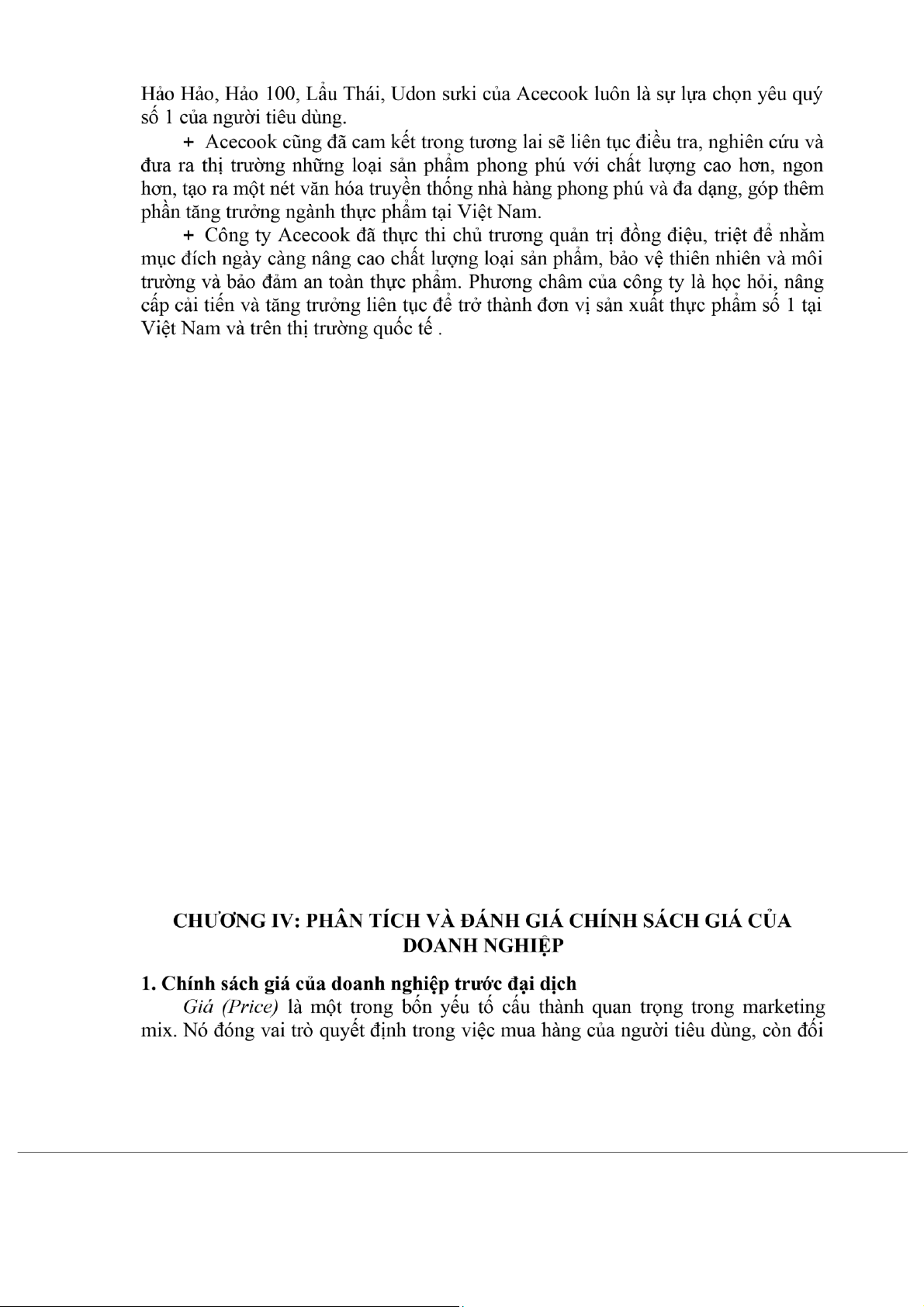 Acecook V i ệt Nam. Phân tích và đánh giá chính sách giá của doanh nghiệp đó.