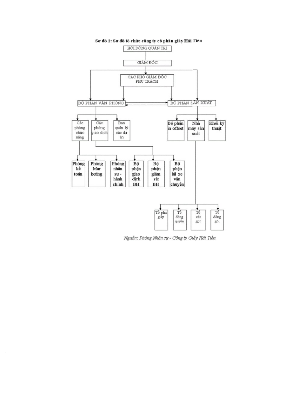 Qua sơ đồ cho thấy tổ chức bộ máy quản lý công ty Cổ phần Giấy Hải Tiền rất đơn