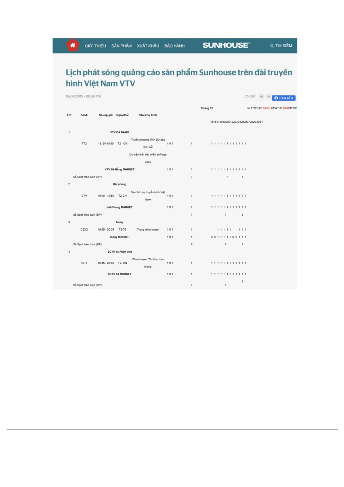 Hình 2.2c. Lịch phát sóng quảng cáo của Sunhouse trên VTV