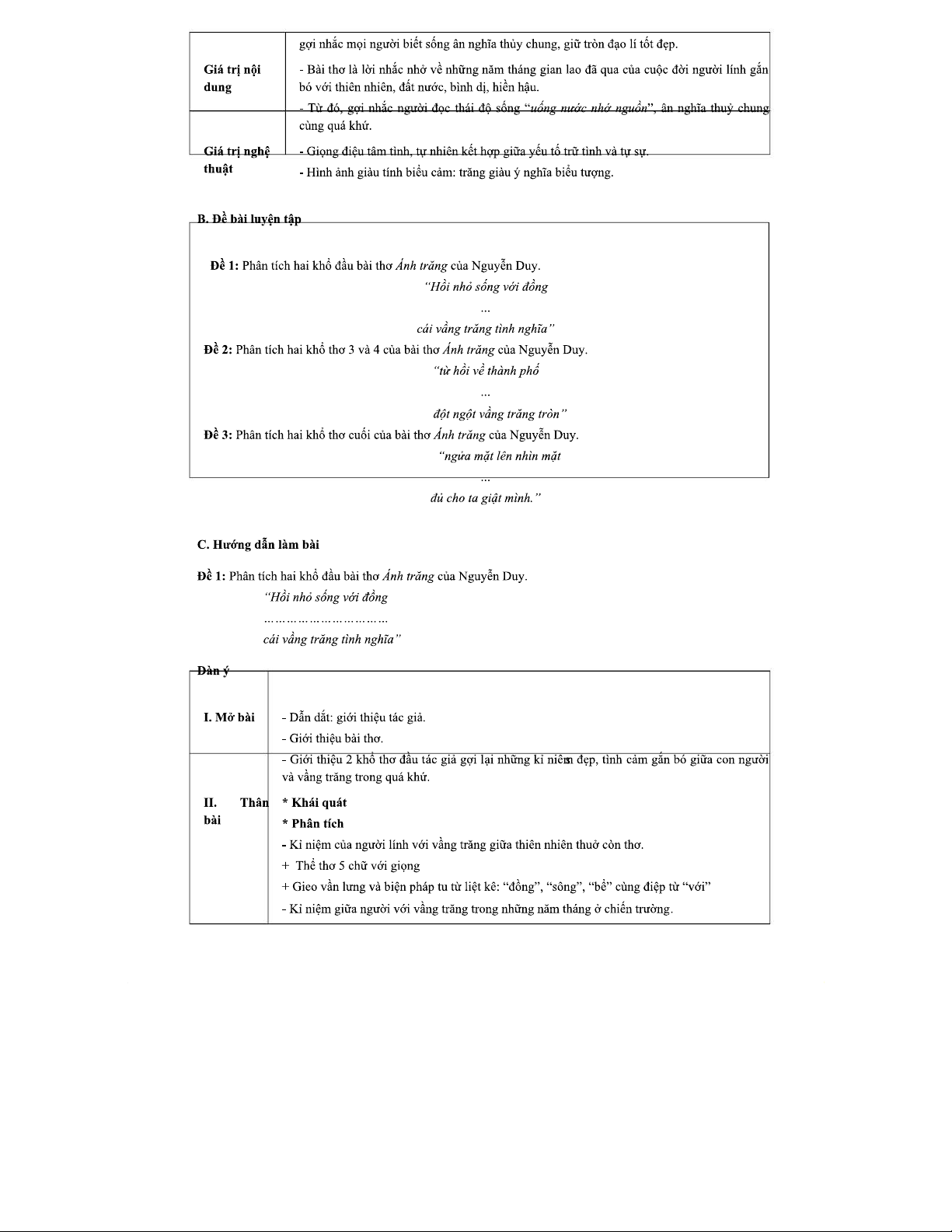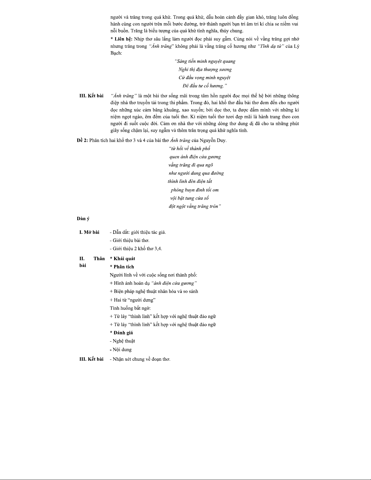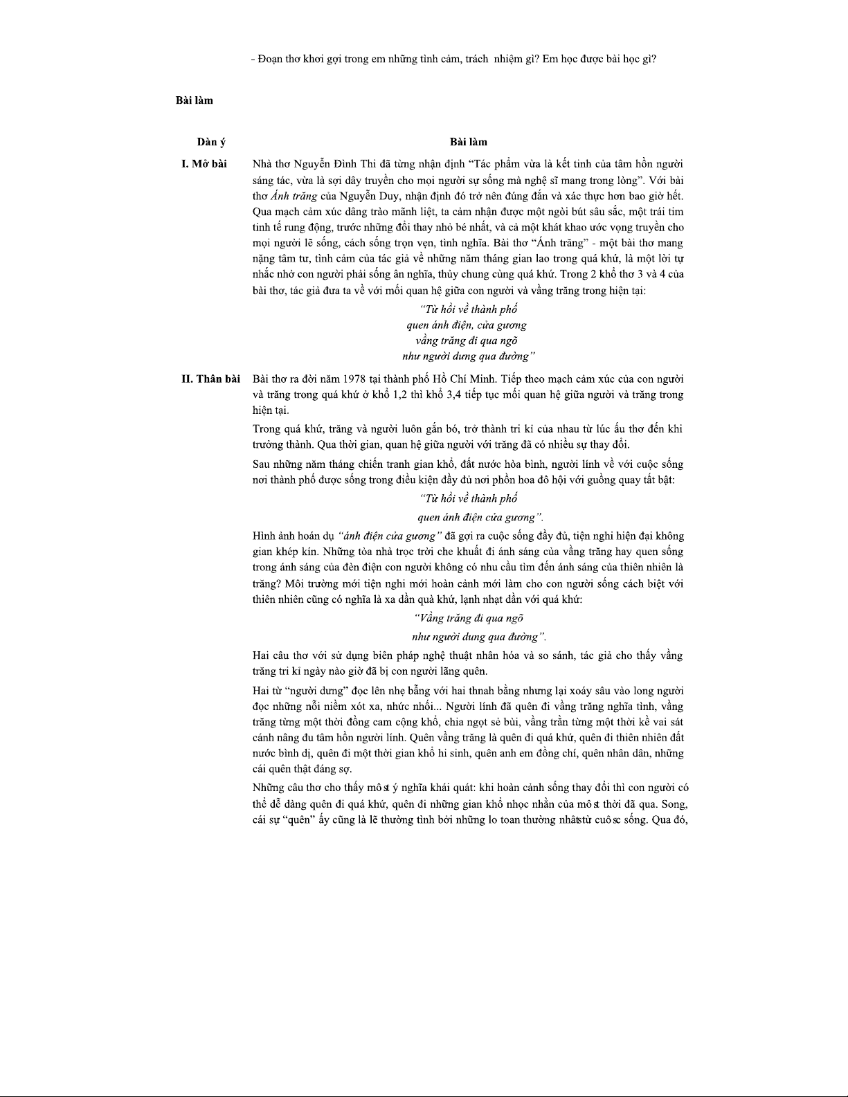 Phân tích bài thơ "Ánh trăng" của Nguyễn Duy - Văn học lớp 9
