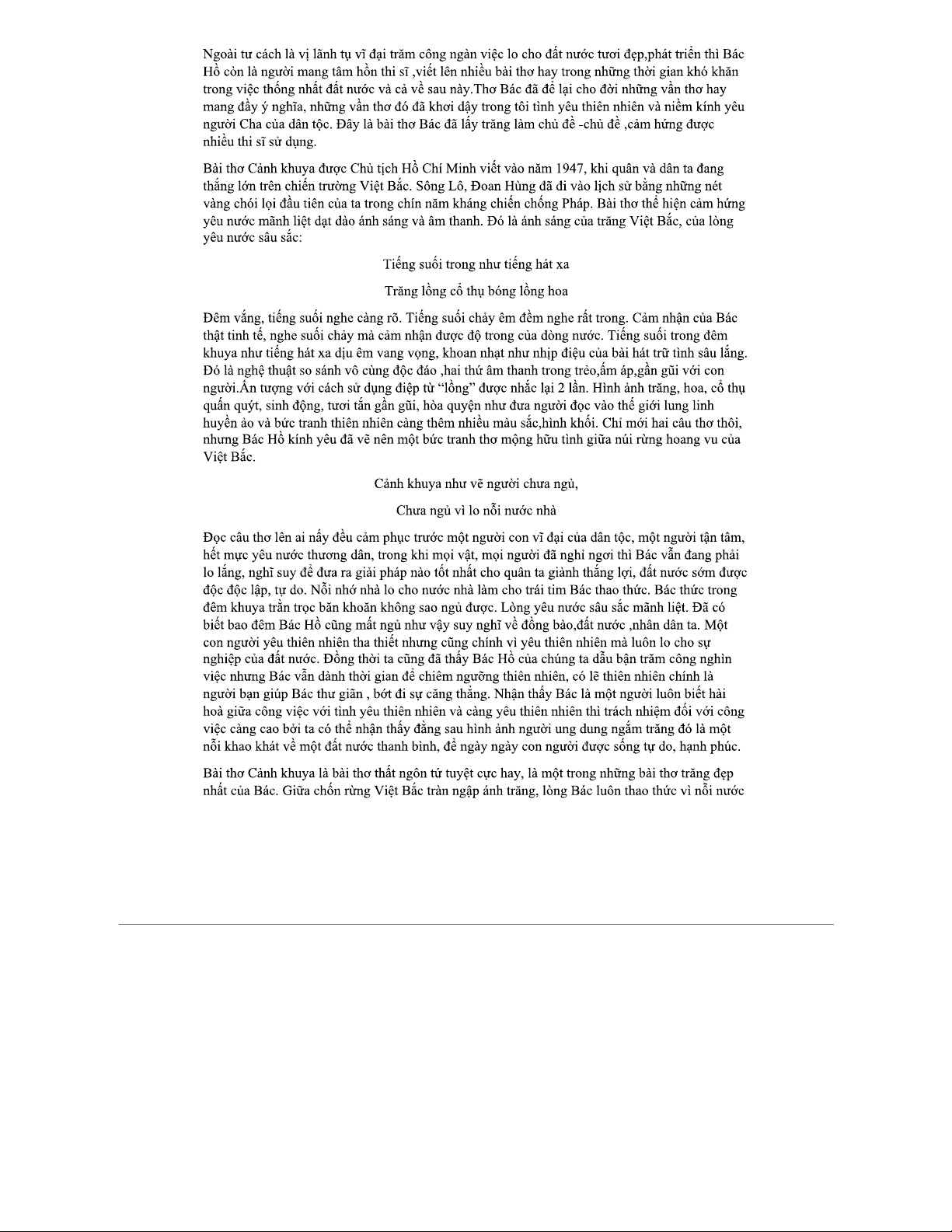 PHÂN TÍCH BÀI THƠ CẢNH KHUYA CỦA BÁC HỒ - Văn Học 1947