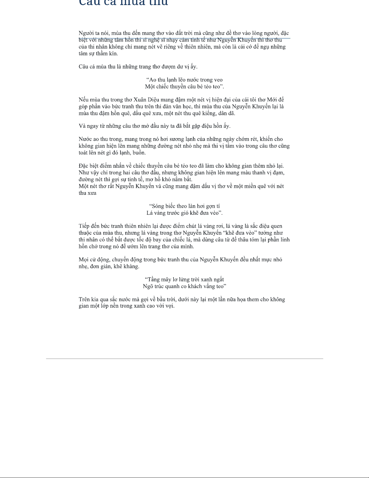 Phân tích bài thơ "Câu cá mùa thu" của Nguyễn Khuyến