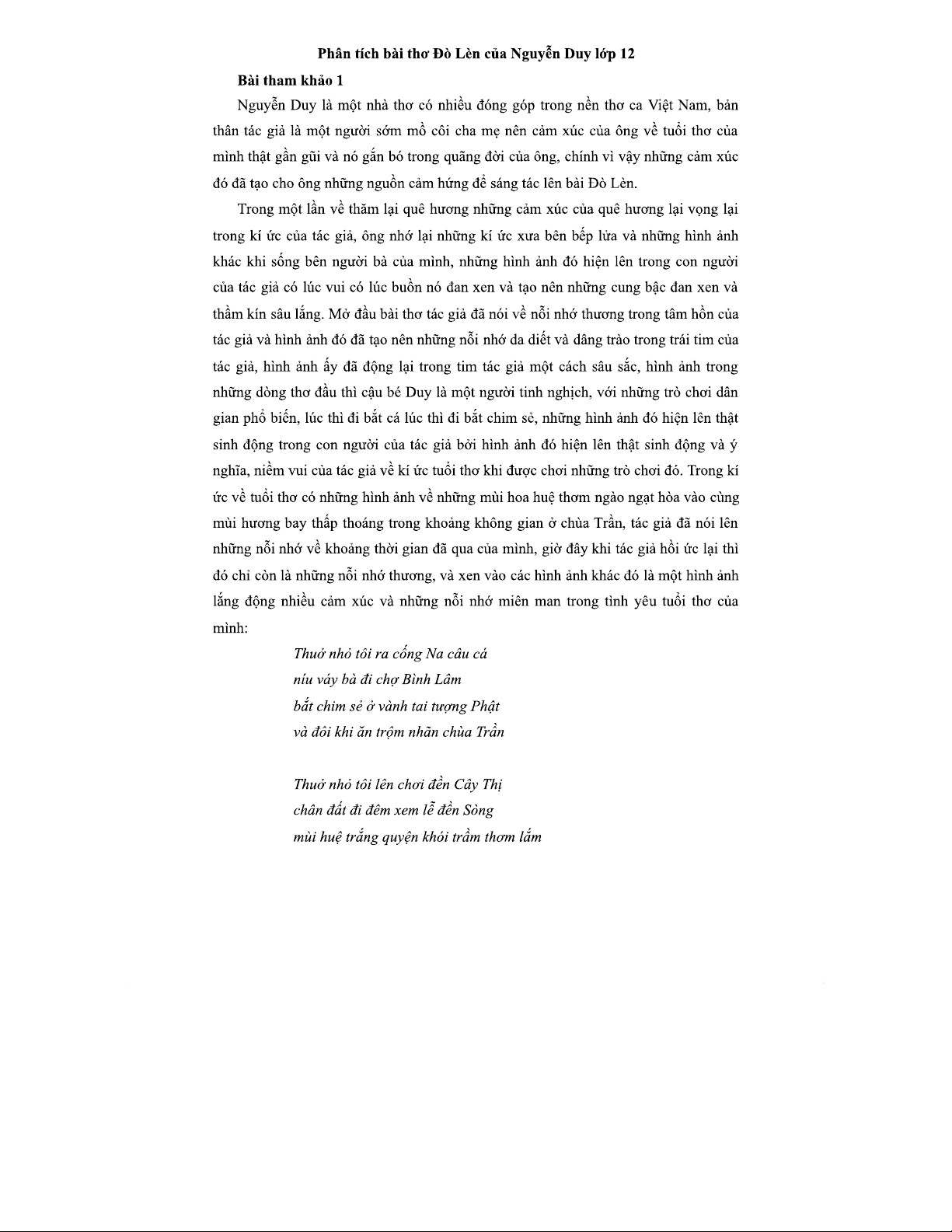 Phân Tích Bài Thơ Đò Lèn Của Nguyễn Duy - Lớp 12