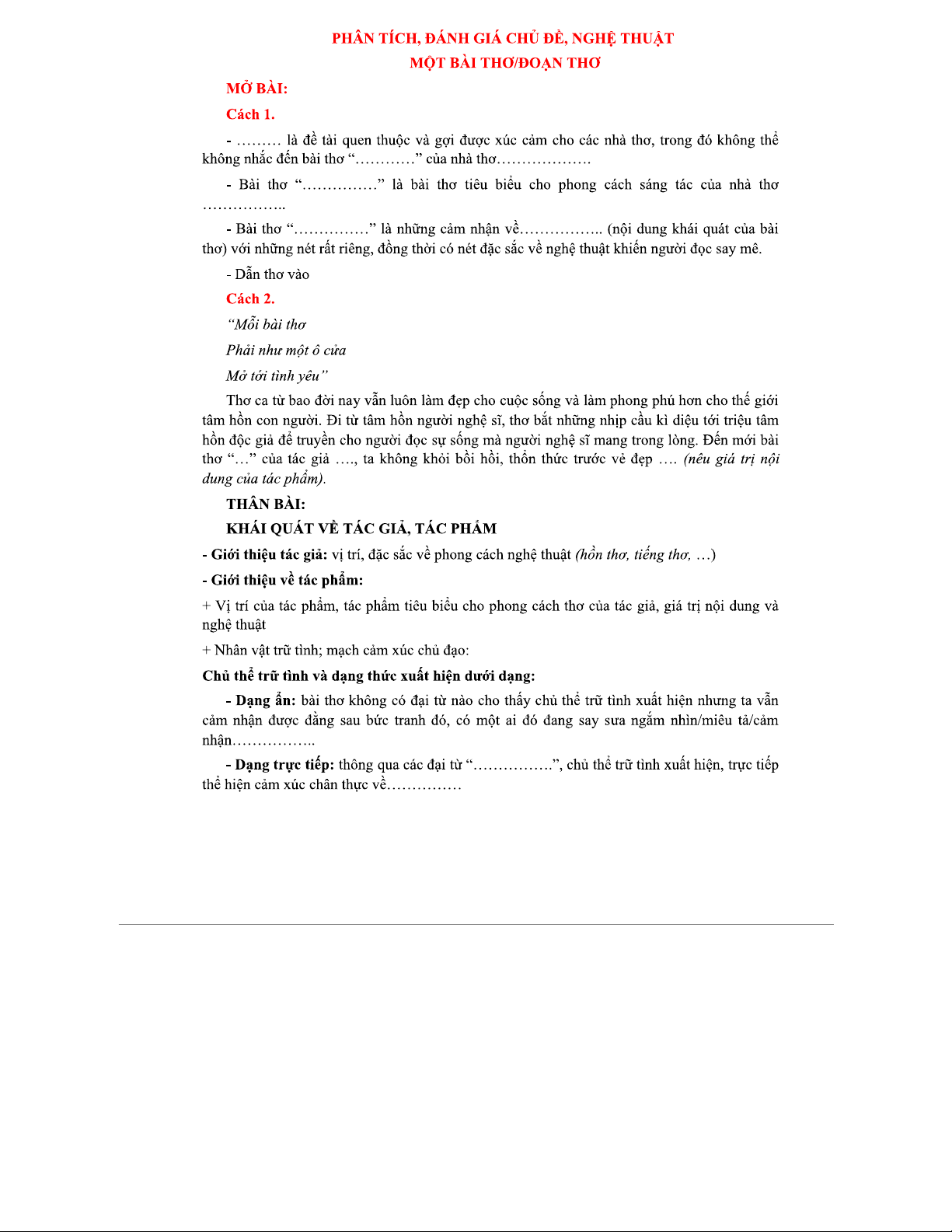 PHÂN TÍCH BÀI THƠ/ĐOẠN THƠ: NGHỆ THUẬT VÀ Ý NGHĨA