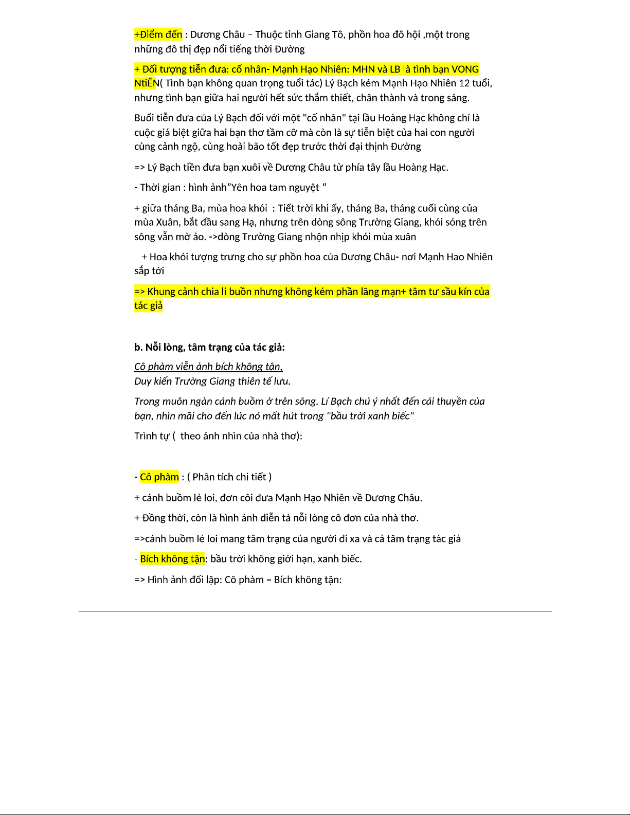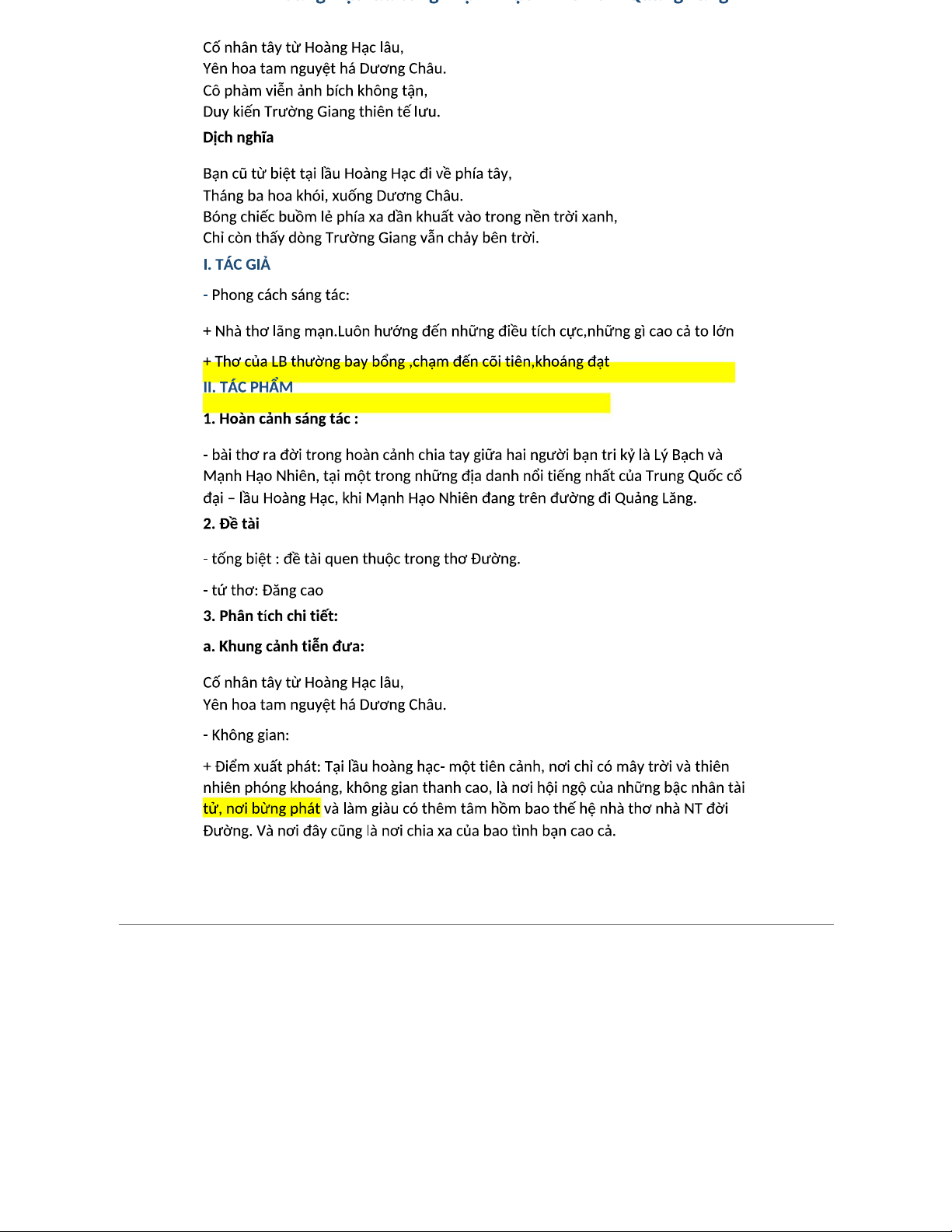 Phân tích bài thơ "Hoàng Hạc lâu tống Mạnh Hạo Nhiên" chi Quảng Lăng