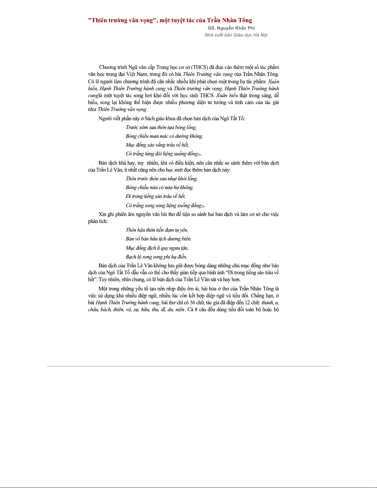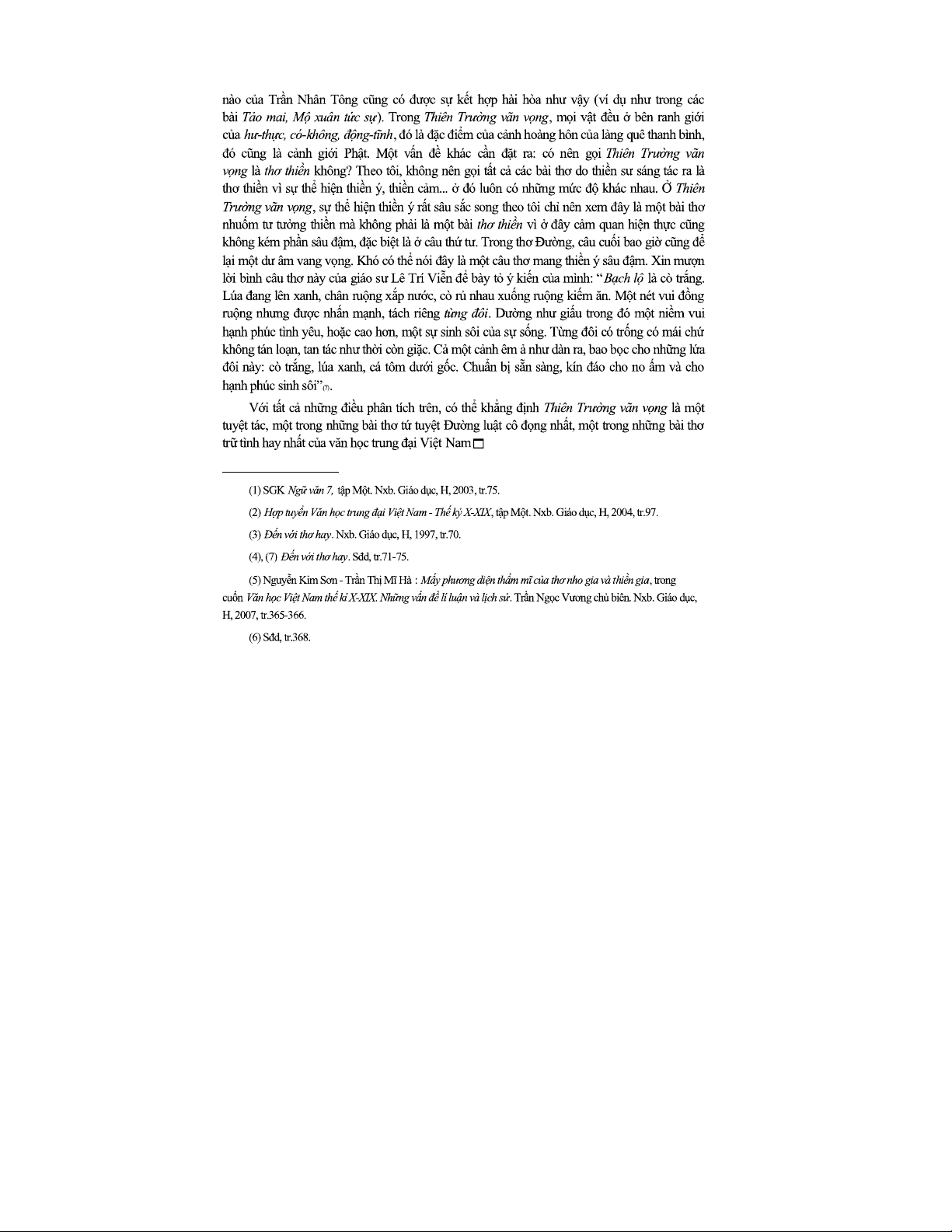 Phân tích bài thơ Thiên Trường vãn vọng của Trần Nhân Tông (THCS)