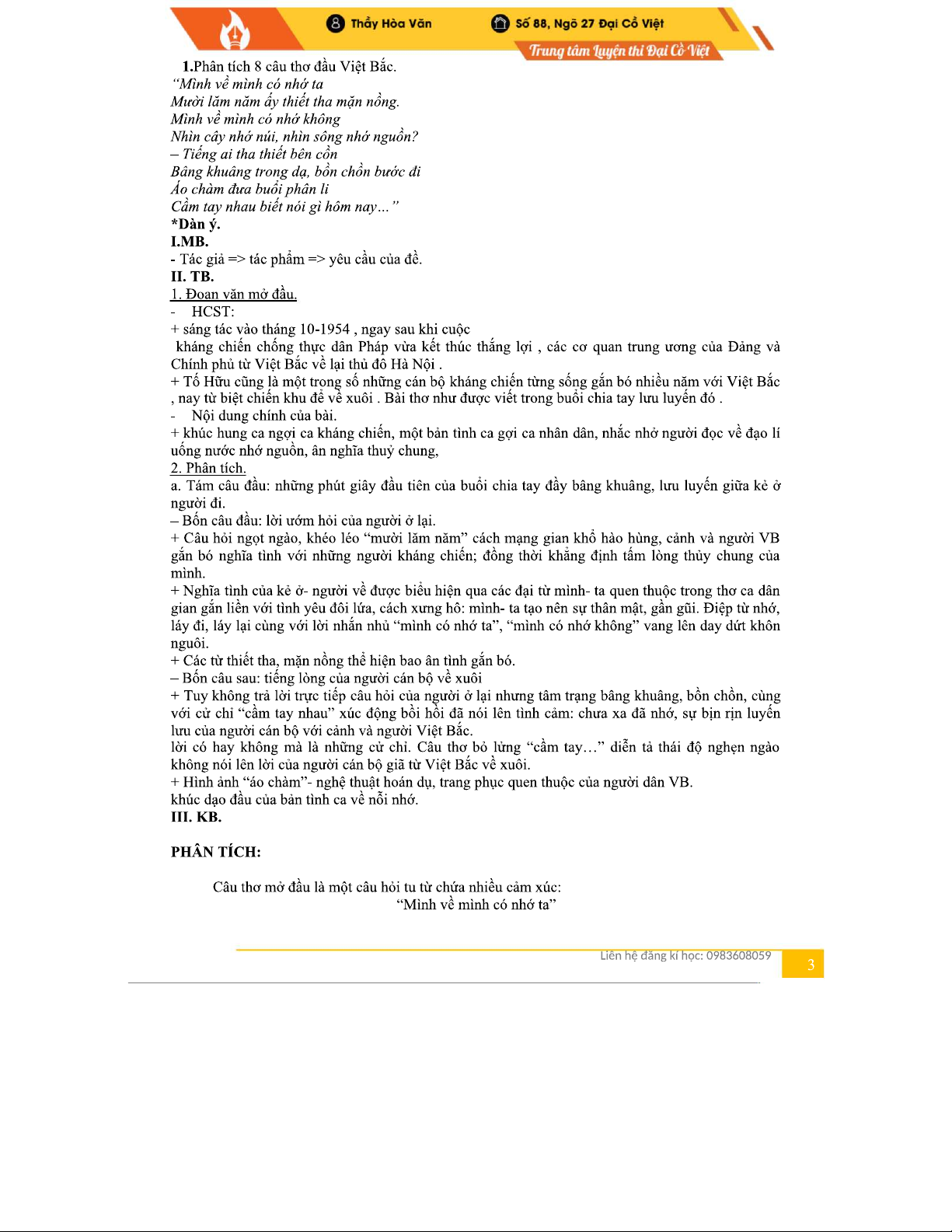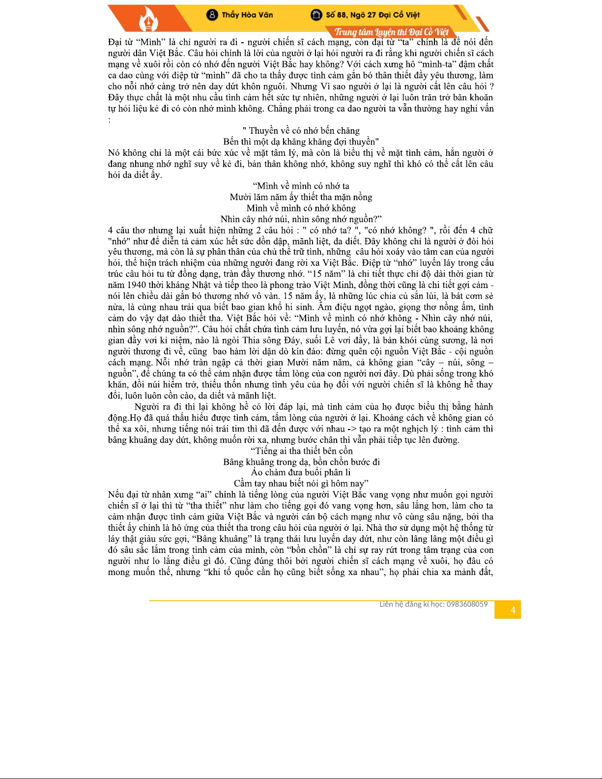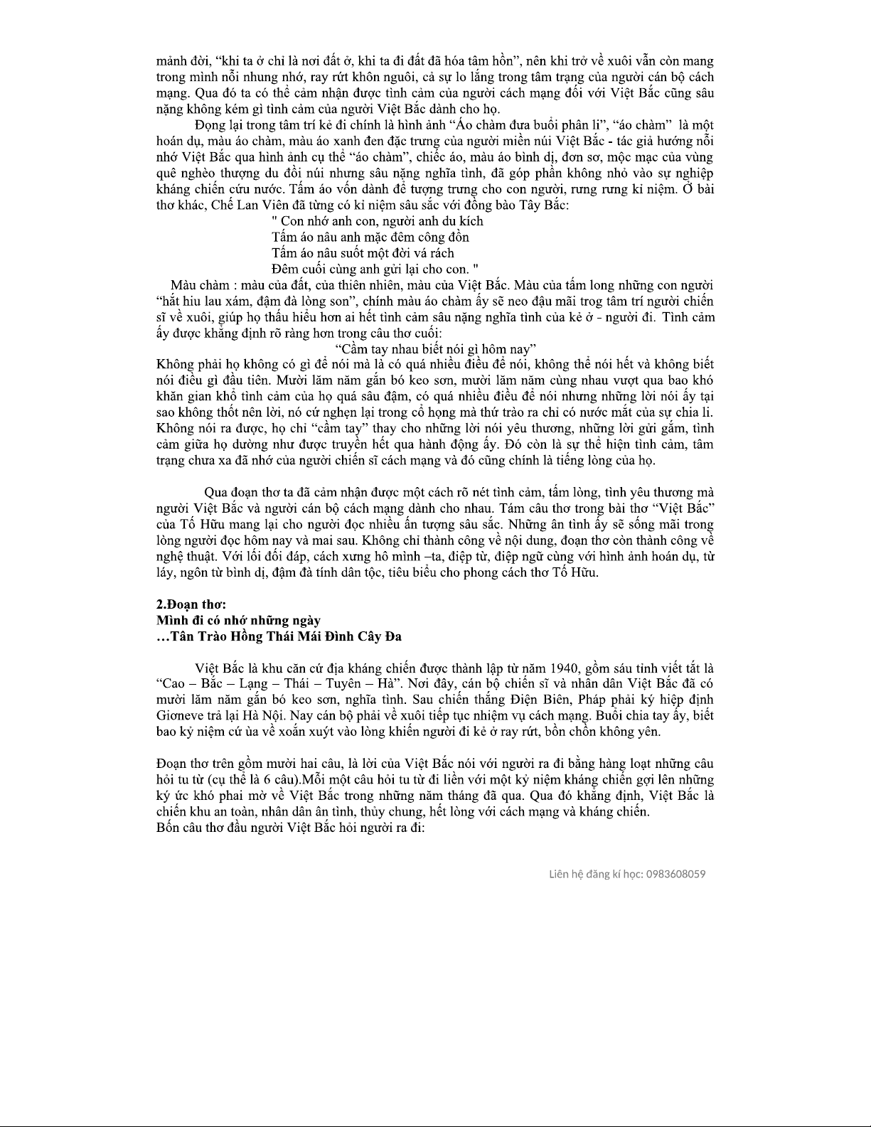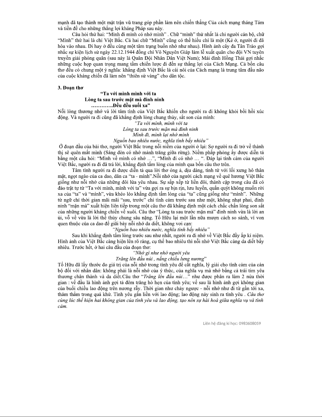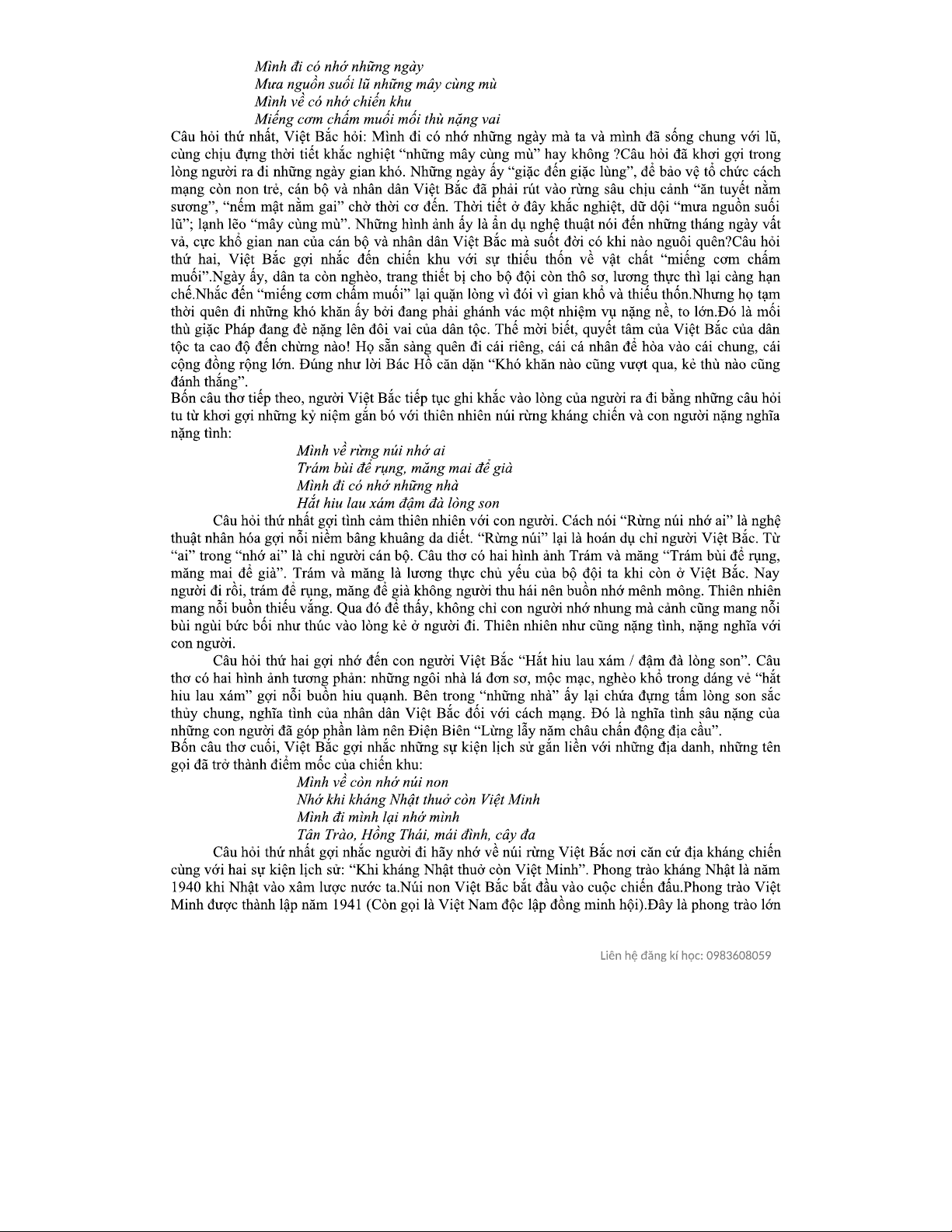 Phân Tích Bài Thơ "Việt Bắc" Của Tố Hữu - Chương Trình Văn 99