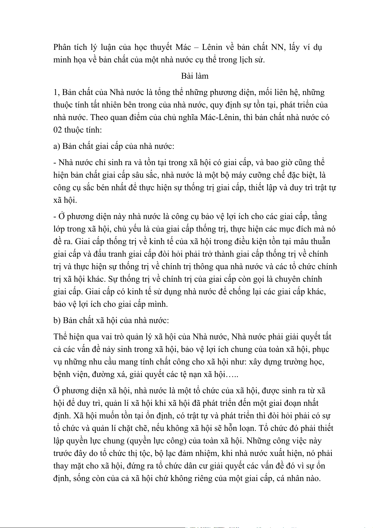 Phân tích lý luận của học thuyết Mác – Lênin về bản chất NN, lấy ví dụ