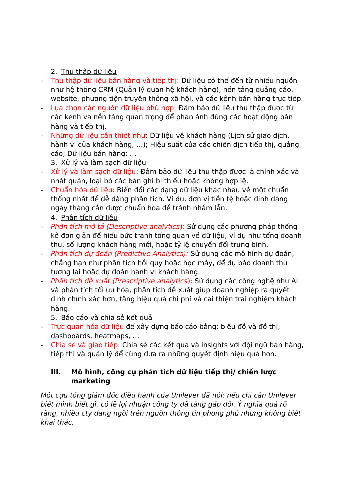 tiếp thị và quản lý để cùng đưa ra những quyết định hiệu quả hơn. III.
