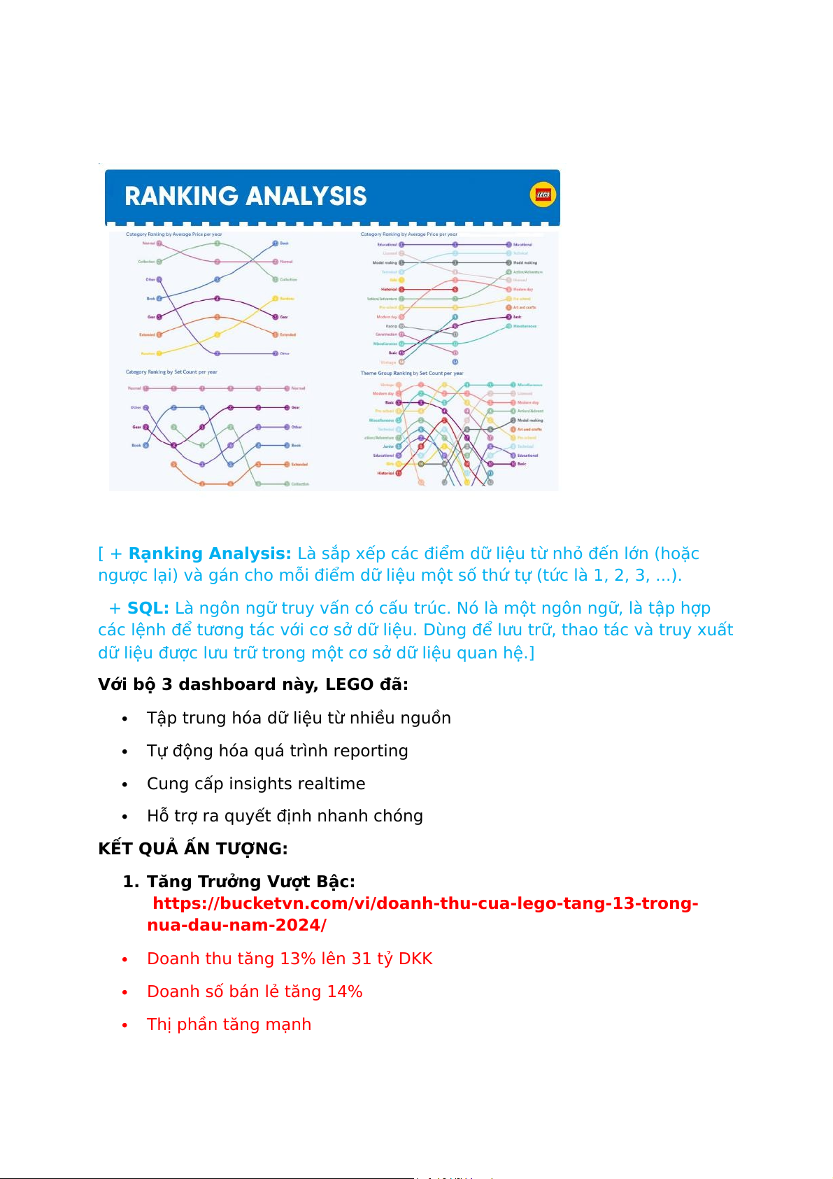 + Category Performance Analysis (Phân Tích Hiệu Suất): LEGO triển khai kết Ranking Analysis