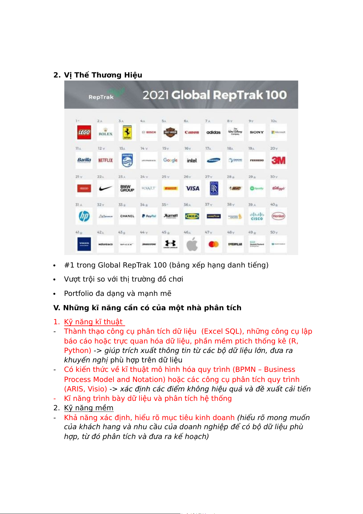 - Kĩ năng trình bày dữ liệu và phân tích hệ thống 2. Kỹ năng mềm