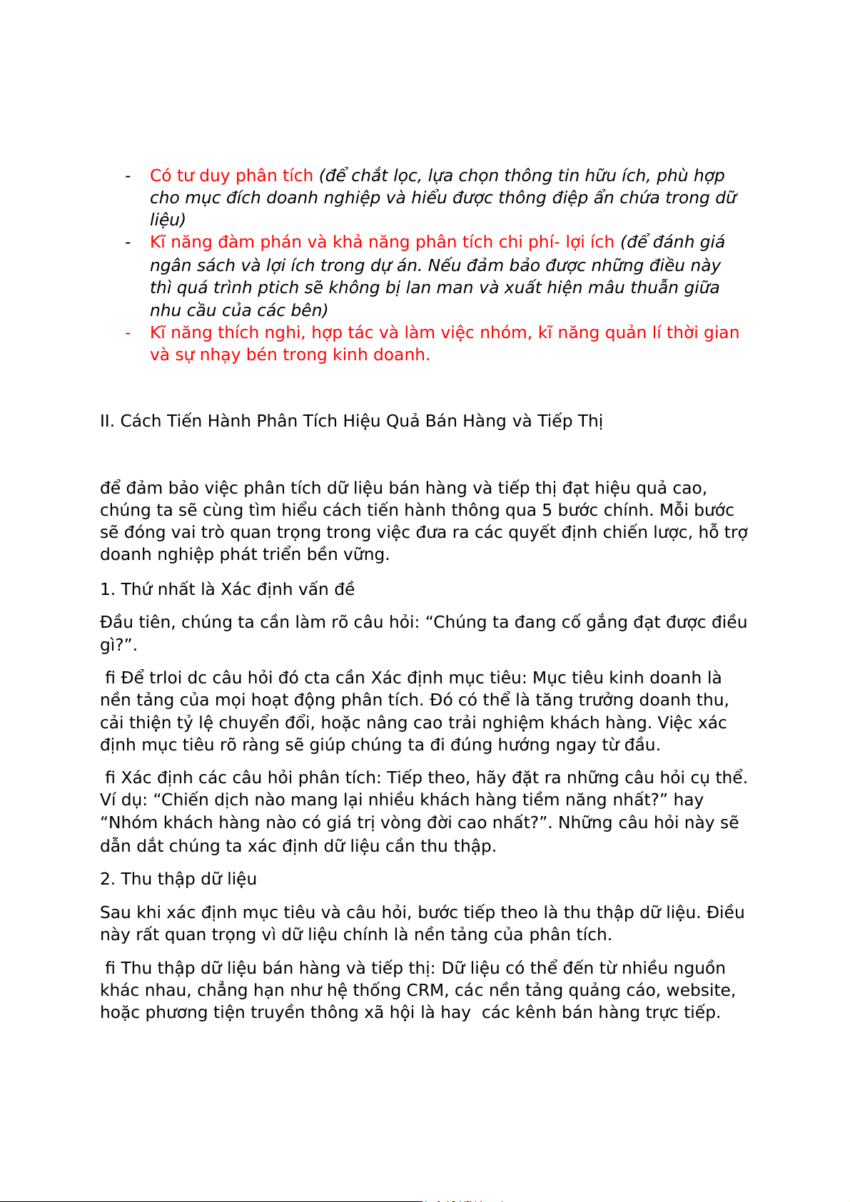II. Cách Tiến Hành Phân Tích Hiệu Quả Bán Hàng và Tiếp Thị