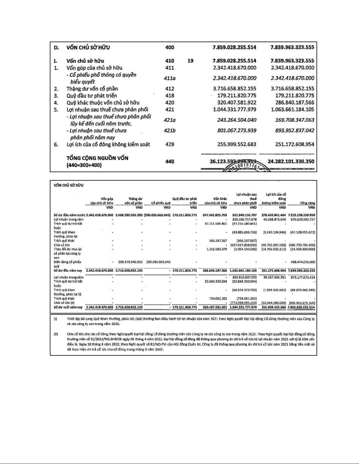 - LN sau thuế chưa phân phối (21-22) giảm 1063 tỷ-1044 tỷ ( giảm nhưng LN ko âm)