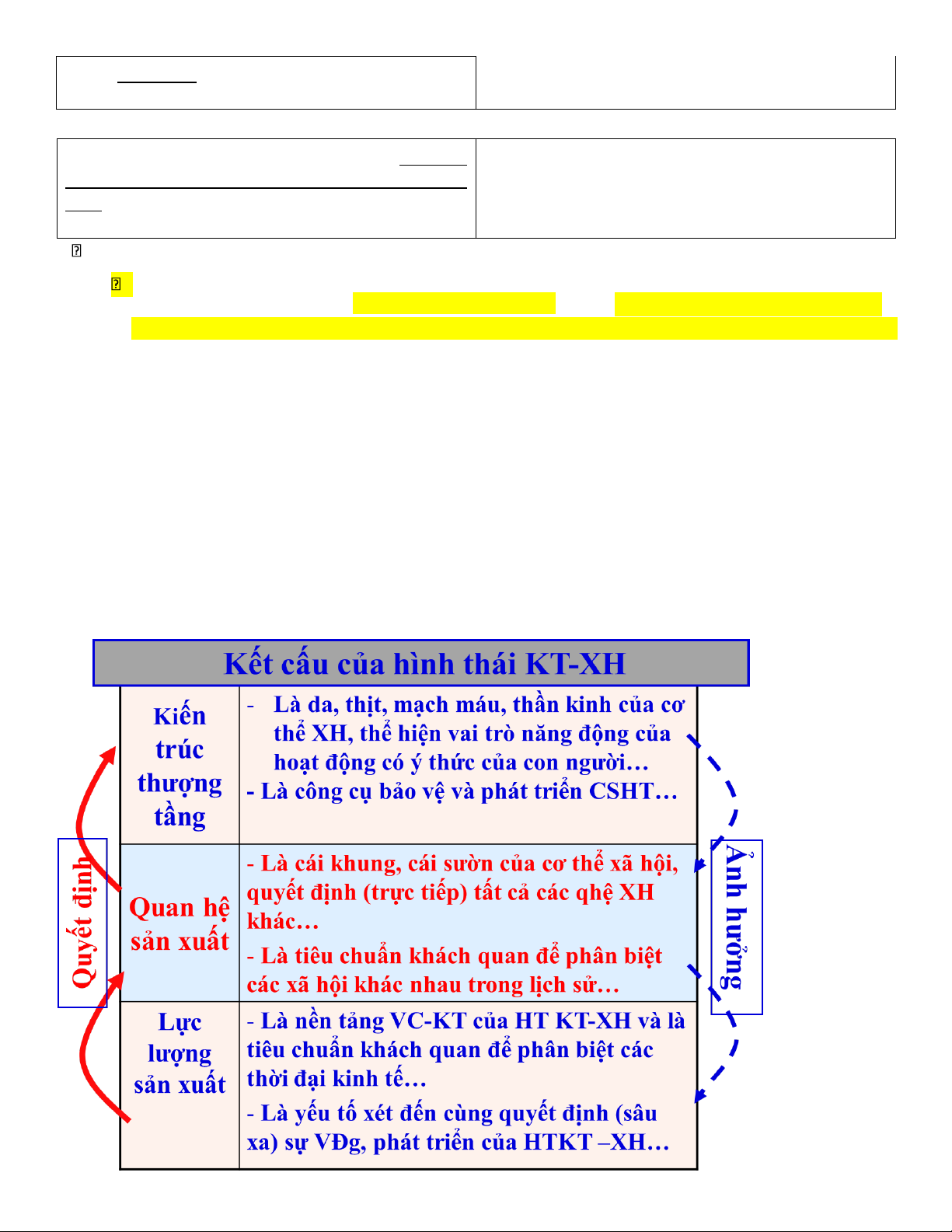 1. CSHT, mà trước hết là quan hệ sản xuất thống trị, gữi vai trò quyết định đối với mọi quan hệ về chính