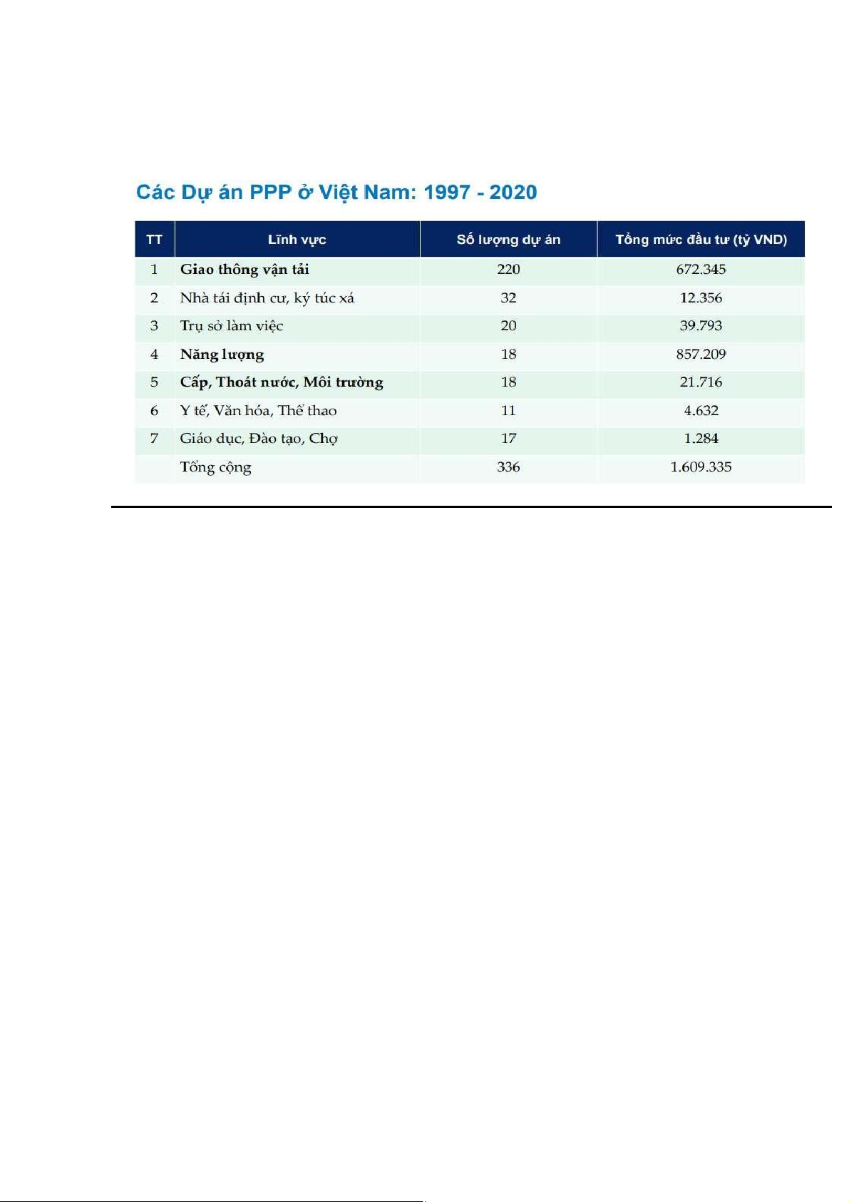 hình thức này. Trong giai đoạn vừa qua ở Việt Nam đã triển khai thực hiện PPP