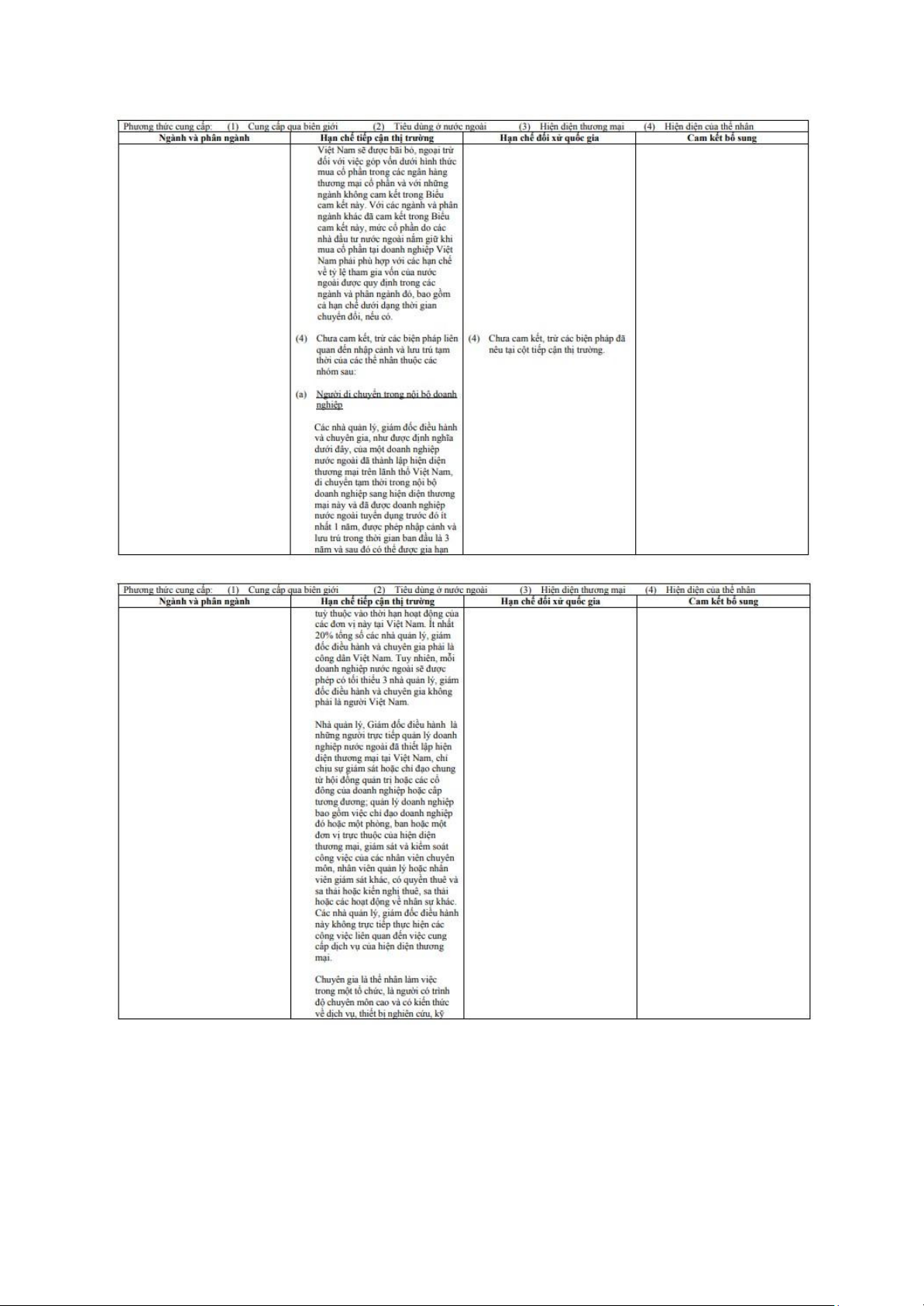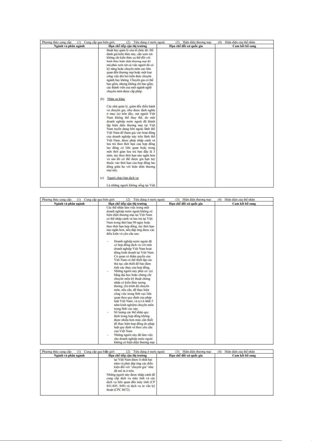 - Hiện diện của thể nhân: Việt Nam tuân theo cam kết chung được nêu dưới đây.