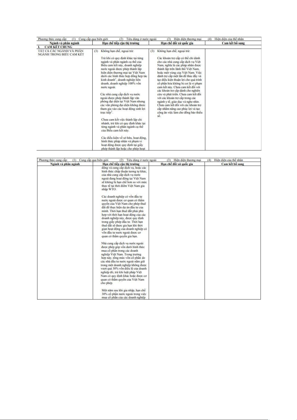 - Hiện diện thương mại: Việt Nam không hạn chế.
