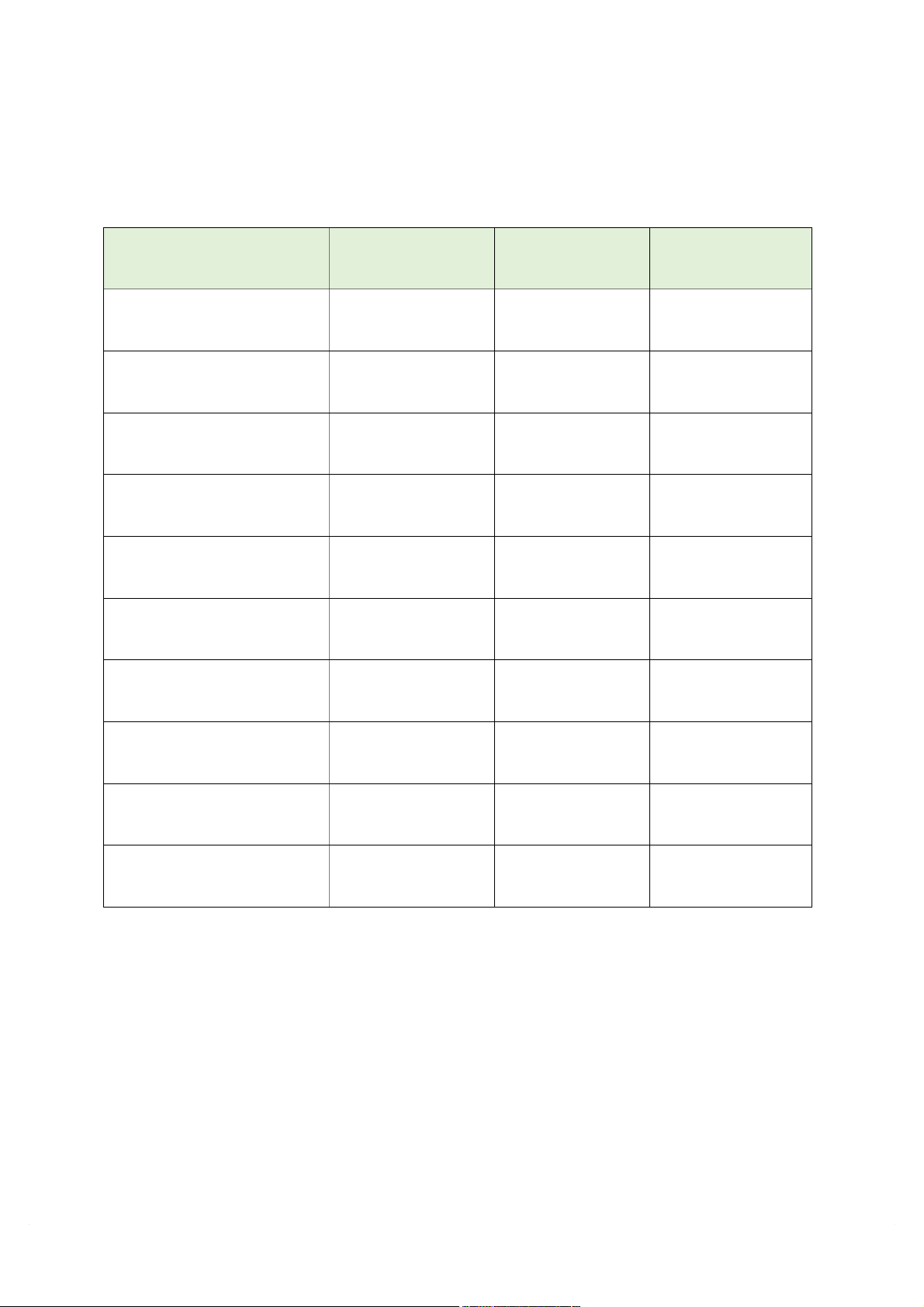 BẢNG PHÂN CÔNG NHIỆM VỤ Họ và tên Nhiệm vụ Đánh giá từ Đánh giá của nhóm trường giảng viên Phan Thị Ngọc Bích Word+Phản Biện Bùi Thị Chi Thuyết trình+Phản biện Phan Nguyễn Linh Chi Lời mở đầu+ Phần 1 Nguyễn Duy Công Phần 2+TLTK Đinh Thị Cúc Phần 3 Hoàng Thị Diệu Phần 2+KL Trịnh Hoàng Dung PPT Vũ Đức Duy Thuyết trình+ Phản biện Phạm Ngọc Diệp Phần 2+KL