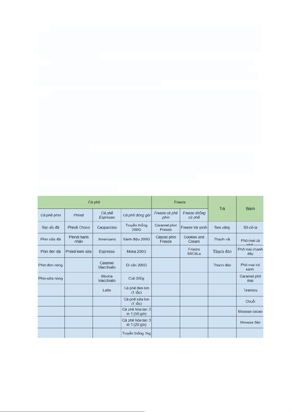 Menu của có tới gần 50 món đồ uống. Hiện giờ, menu của Highland chỉ còn khoảng 20