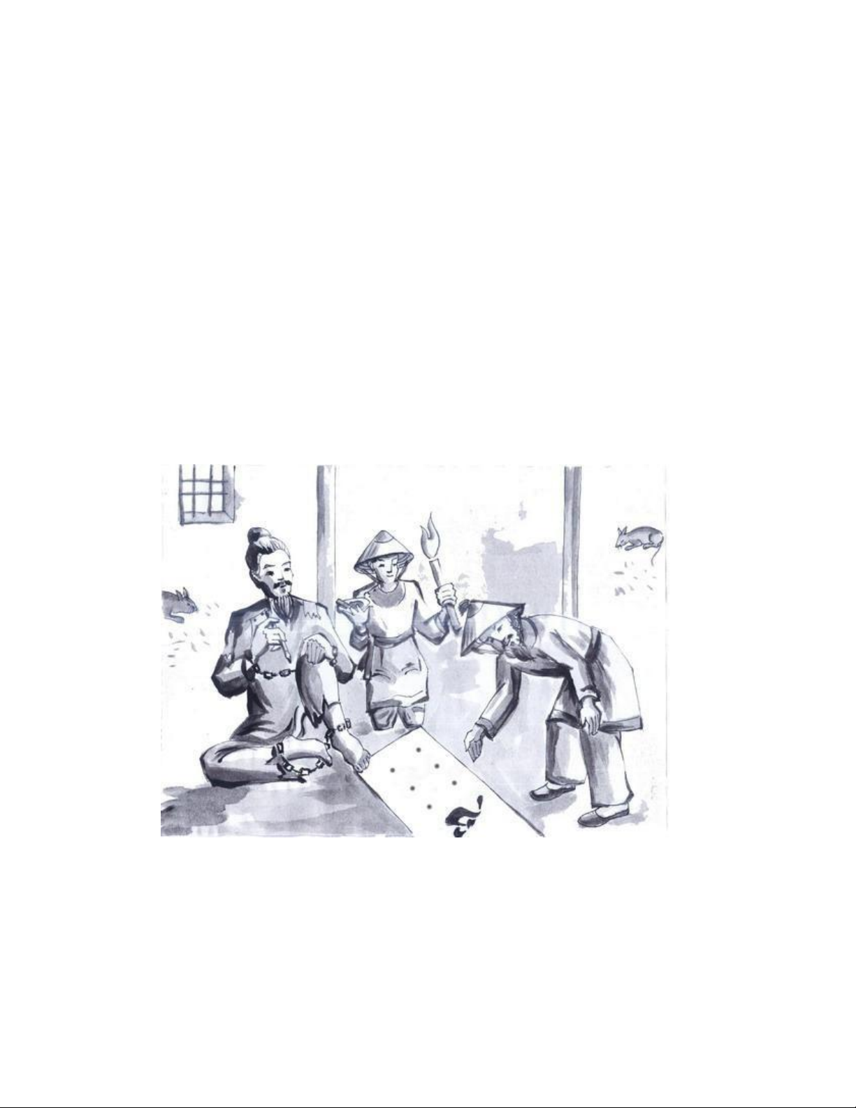 mạnh đầu thang gông xuống thềm đá tảng đánh thuỳnh một cái”. Lúc bị giam trong nhà lao,