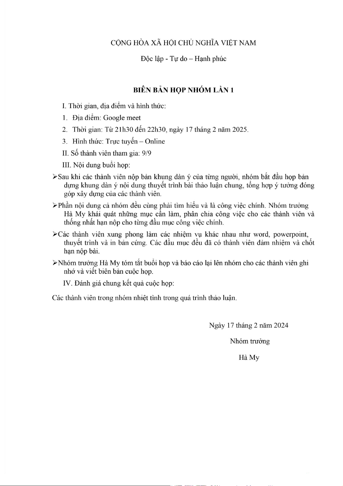 BIÊN BẢN PHÂN CÔNG NHIỆM VỤ T Họ và tên Nhiệm vụ