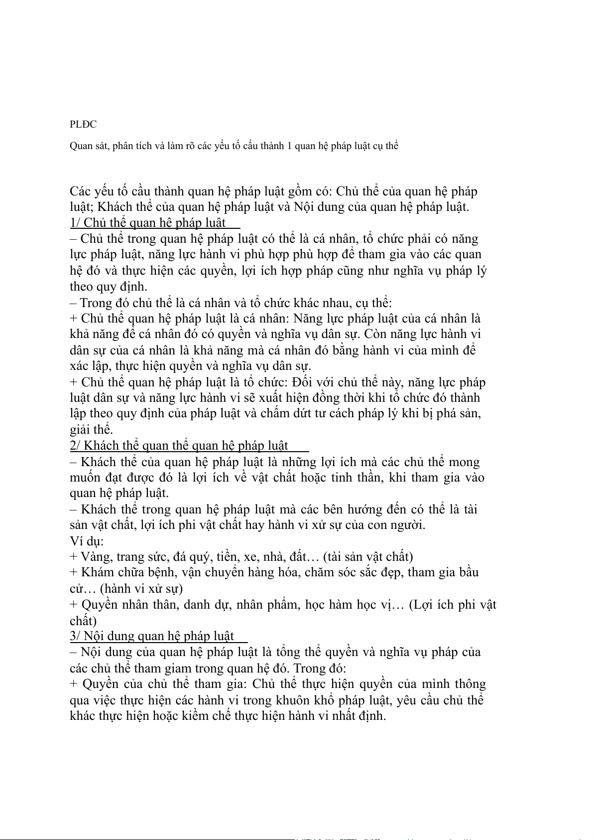 Quan sát, phân tích và làm rõ các yếu tố cấu thành 1 quan hệ pháp luật cụ thể