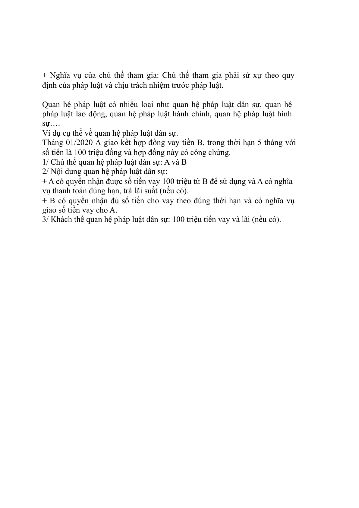 3/ Khách thể quan hệ pháp luật dân sự: 100 triệu tiền vay và lãi (nếu có).