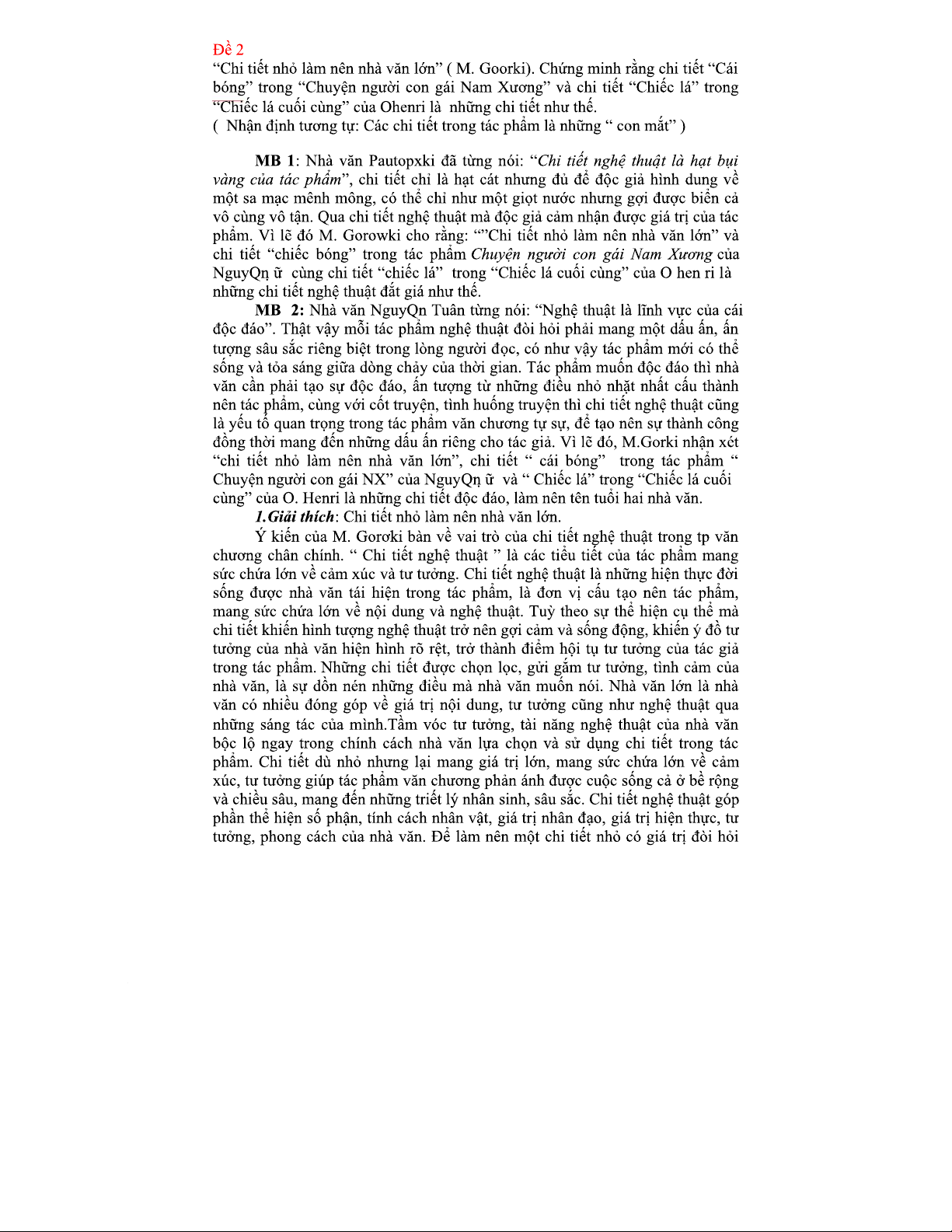 Phân tích chi tiết nghệ thuật trong tác phẩm của Nguyễn Dữ và O. Henri - Đề 2