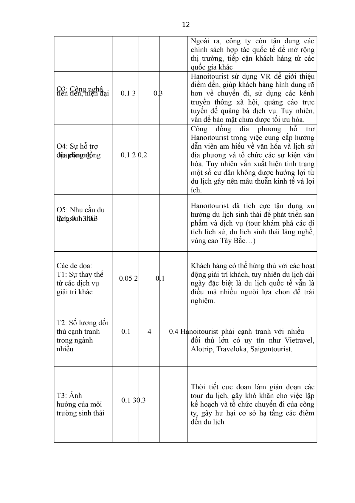 Giải thích chiến lược trọng loại quan trọng Các cơ hội: O1: Thị trường 0.15 4