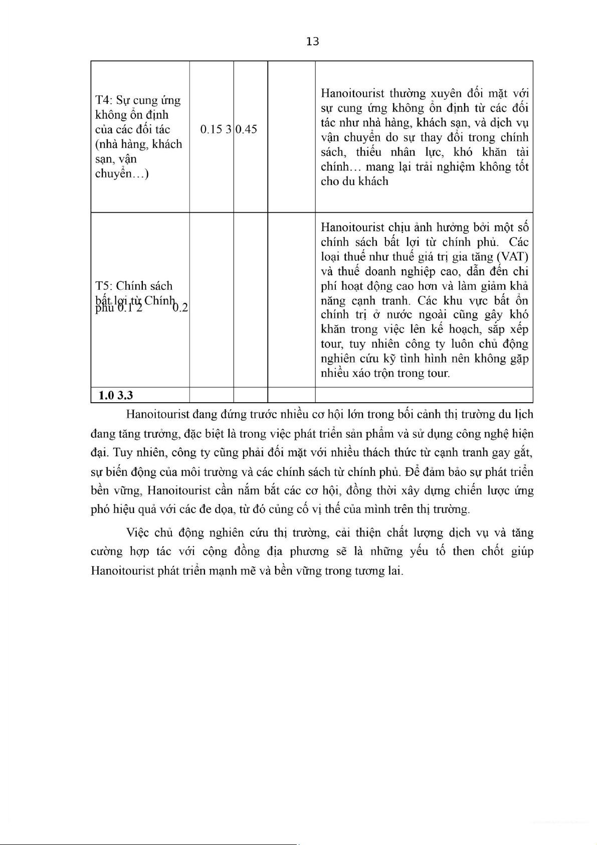 lược cấp công ty và chiến lược cấp kinh doanh của công ty Hanoitourist. Với sự phân tích
