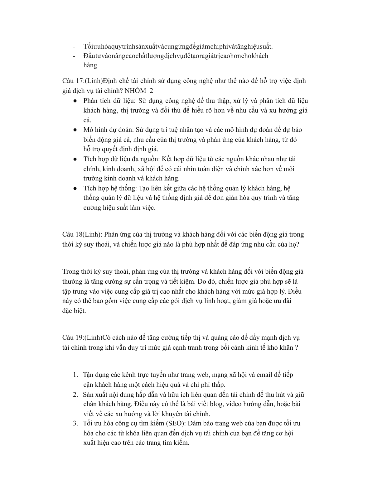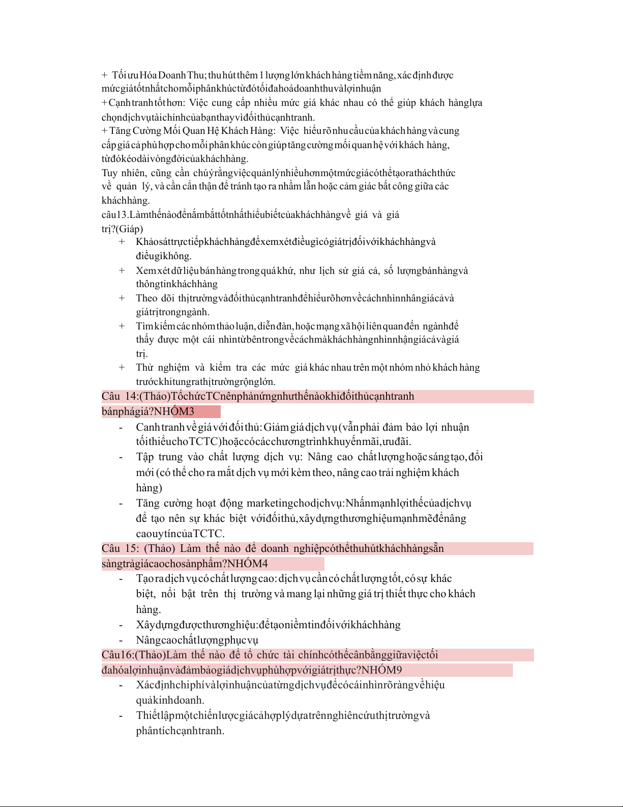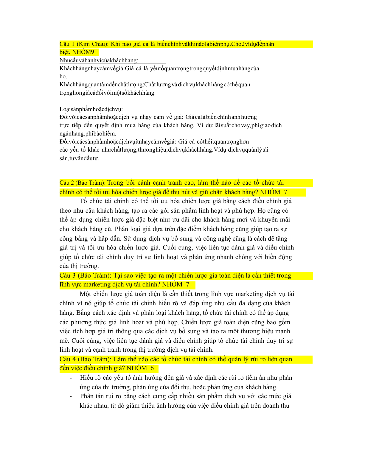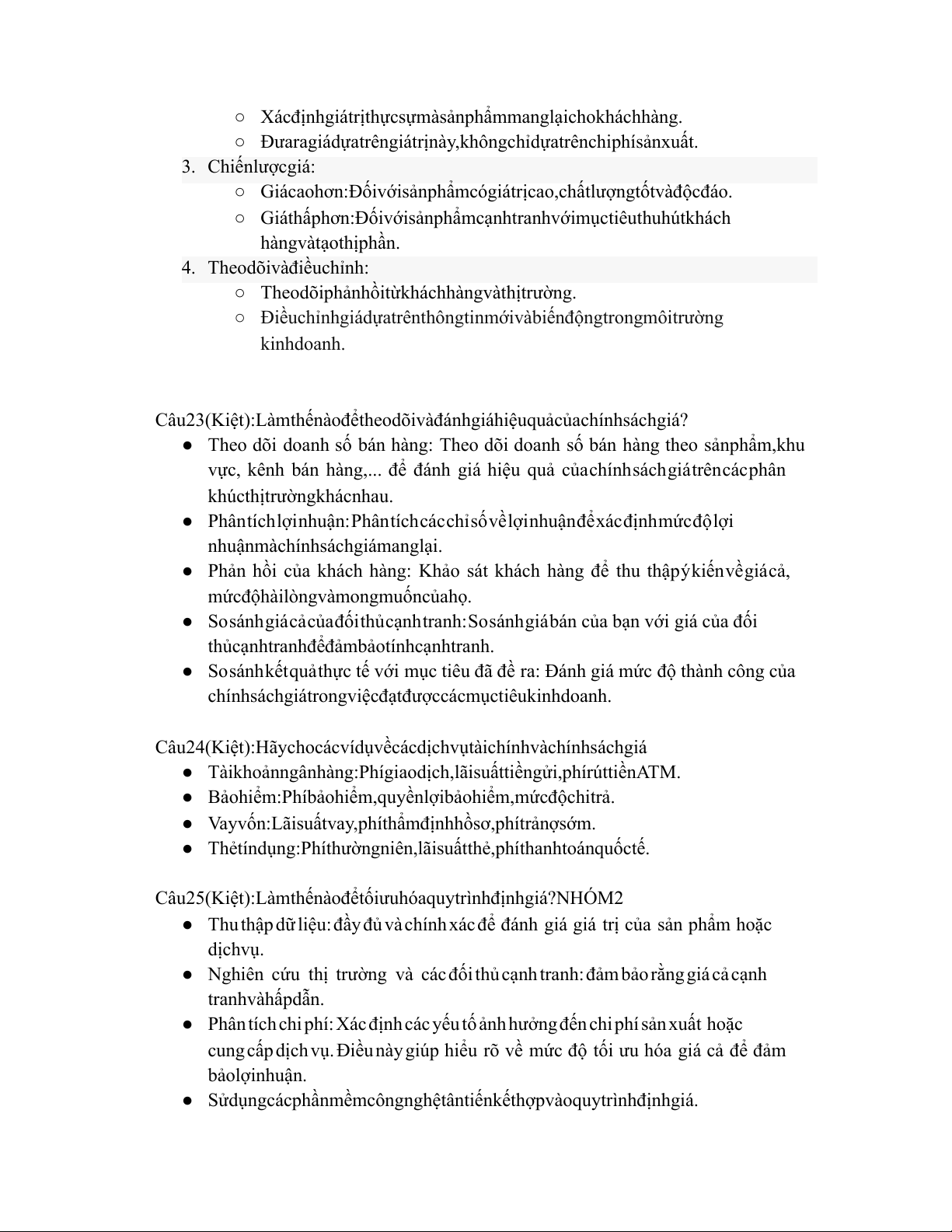 Câu 3 (Bảo Trâm): Tại sao việc tạo ra một chiến lược giá toàn diện là cần thiết trong