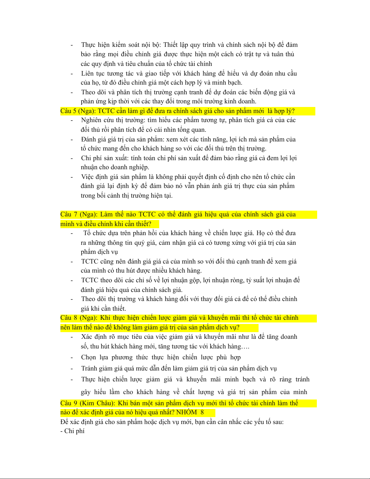 Câu 5 (Nga): TCTC cần làm gì để đưa ra chính sách giá cho sản phẩm mới là hợp lý? -