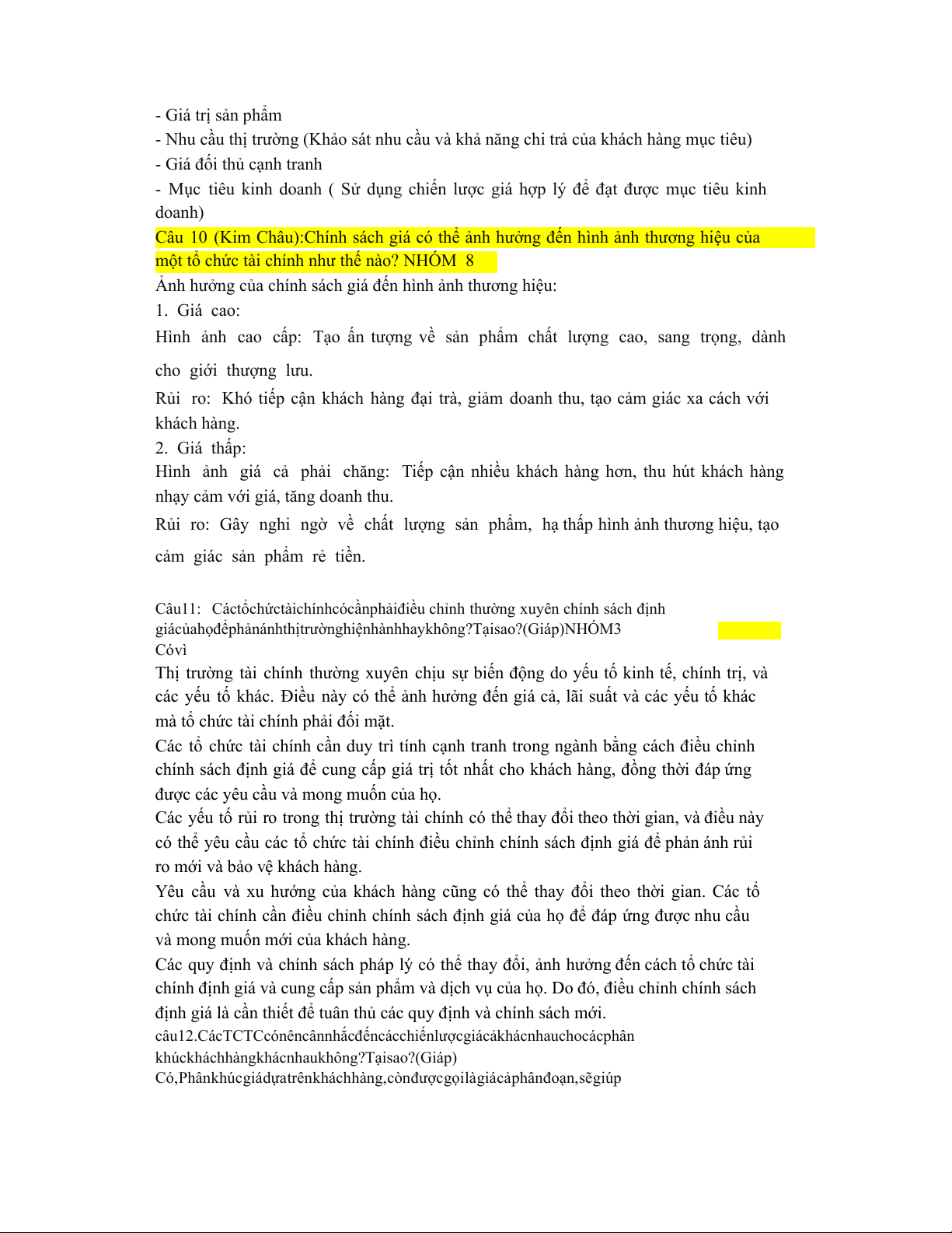Câu 10 (Kim Châu):Chính sách giá có thể ảnh hưởng đến hình ảnh thương hiệu của