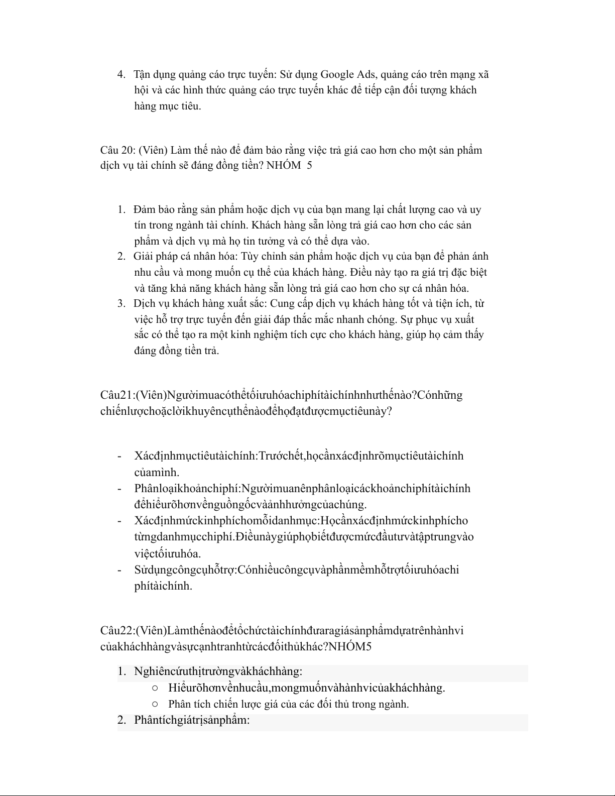 Câu22:(Viên)Làmthếnàođểtổchứctàichínhđưaragiásảnphẩmdựatrênhànhvi