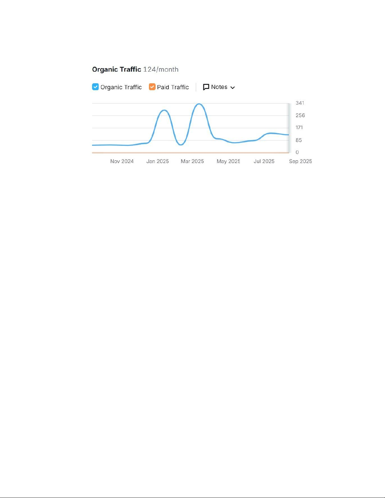 - Organic Traffic: Trung bình chỉ đạt khoảng 124 lượt truy cập/tháng, mức khá thấp