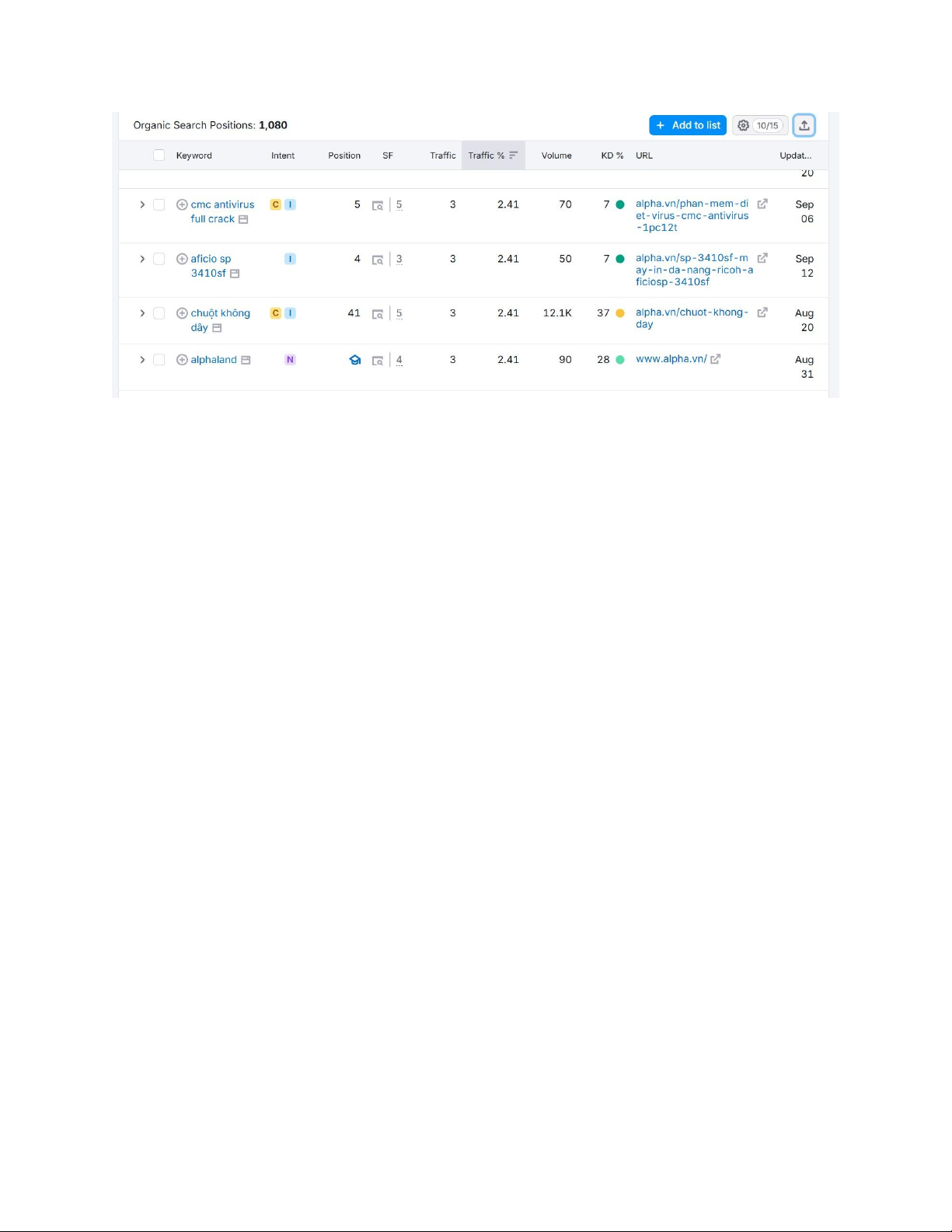 hạng thấp, dẫn tới hạn chế traffic. lOMoAR cPSD| 59452058 Về Organic Traffic: